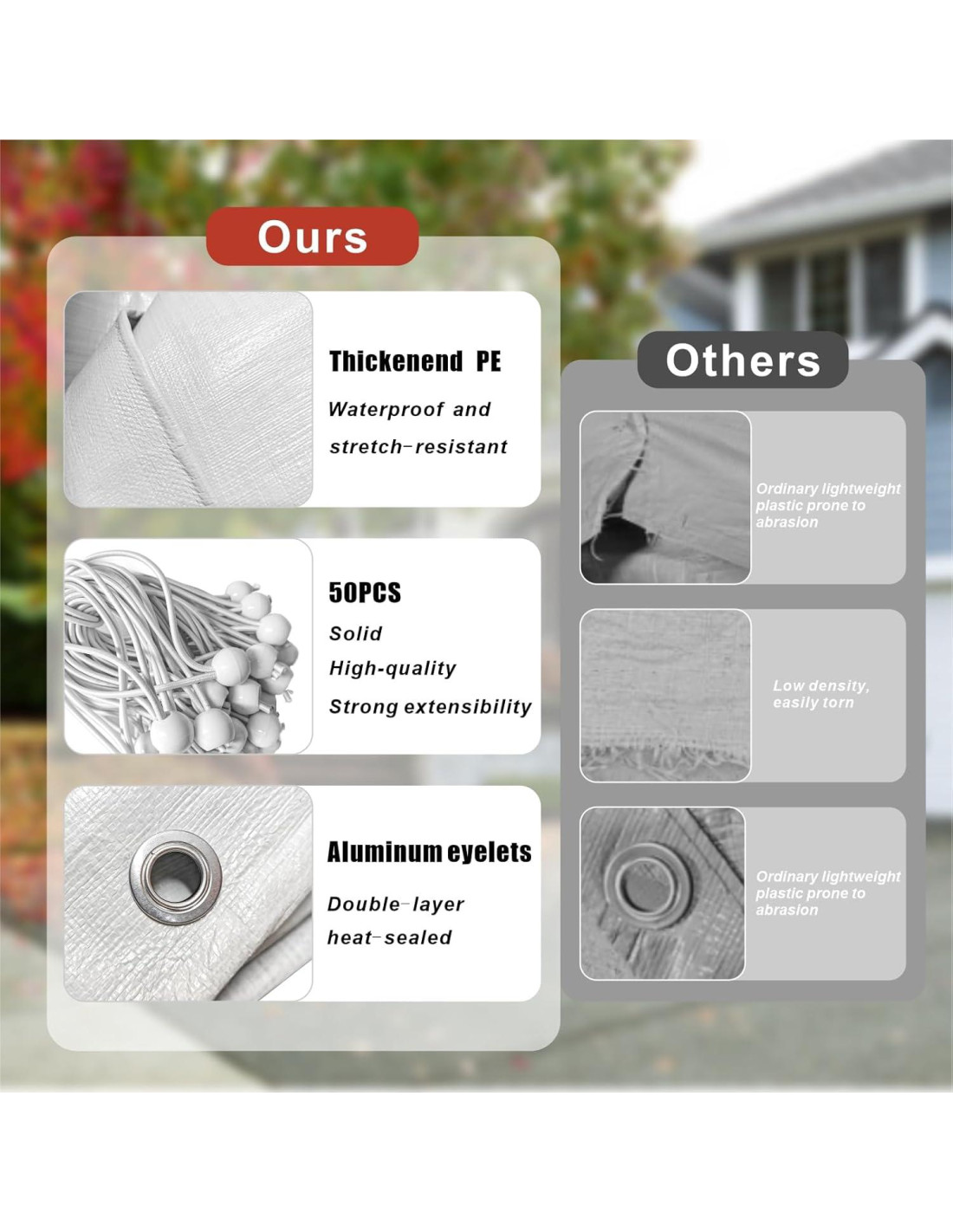 - 3. Montaje Fácil: La cubierta de reemplazo viene con 50 piezas de bungee de bola, pasa los cordones a través de cada ojete y conéctalos a la estructura. Debido a que los bungees se estiran, son fáciles de usar y, lo más importante, no desgarran la lona, es fácil de instalar sin herramientas adicionales requeridas.