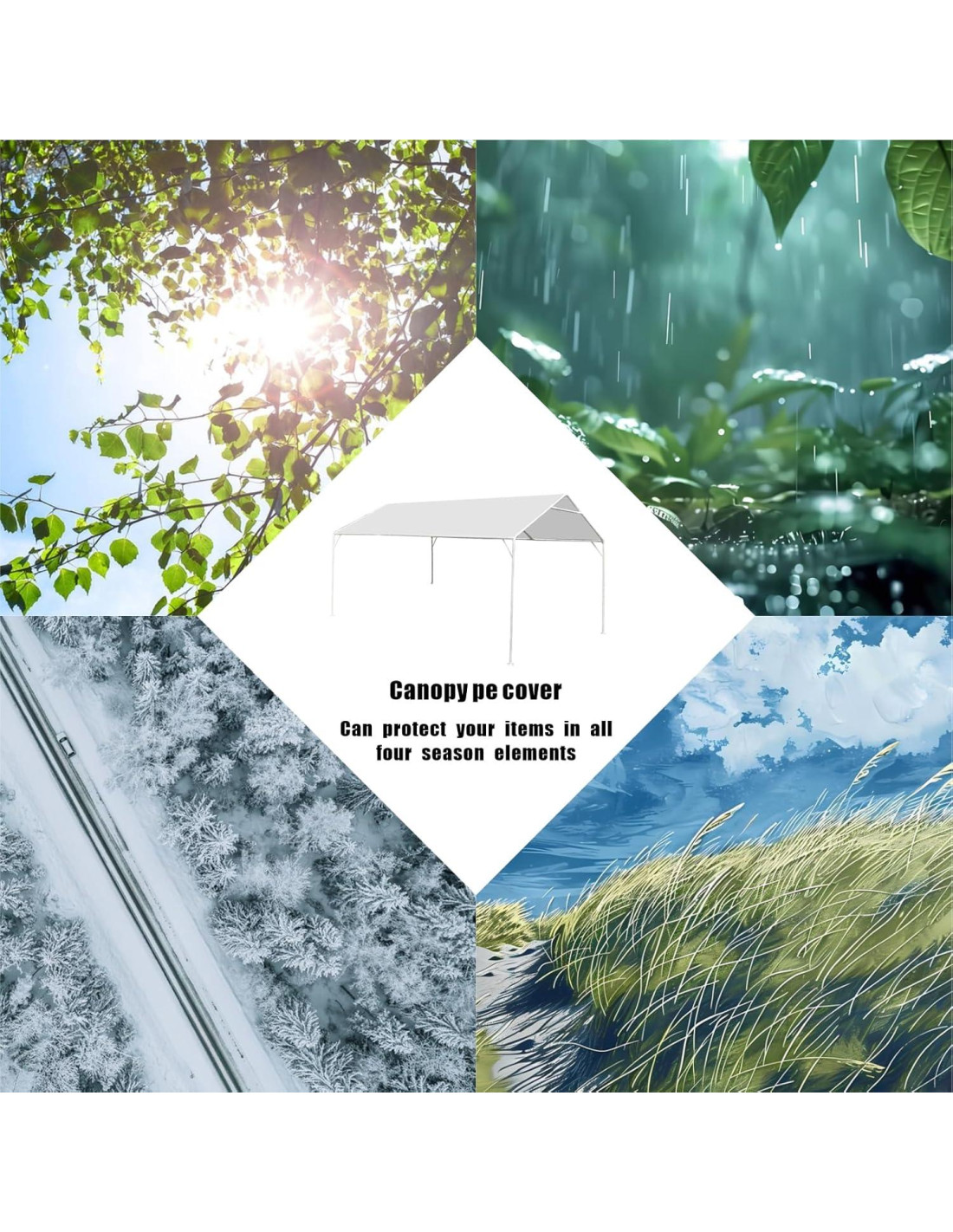 - 2. Fuerte Toldo para Automóvil: Esta cubierta de reemplazo para carport está fabricada con tela de polietileno tejido premium de 240g, la carpa de calidad superior tiene un grosor de 16 mil y un conteo de tejido de 16 x 16, lo que le da fuerza y durabilidad, es a prueba de desgarros, anti-UV e impermeable, resistente a la decoloración. Los agujeros y bordes reforzados están diseñados para ser utilizados para el drenaje de agua de lluvia, protege tu automóvil y barco de la lluvia, sol, viento y nieve.