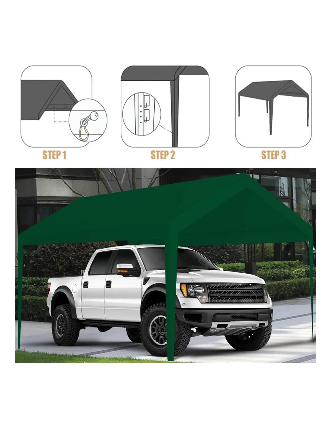 - Fácil de Instalar La instalación es súper rápida y fácil. Se incluyen 36 bungees de bola para asegurar firmemente la carpa al marco. Esto mejorará la estabilidad del carport.