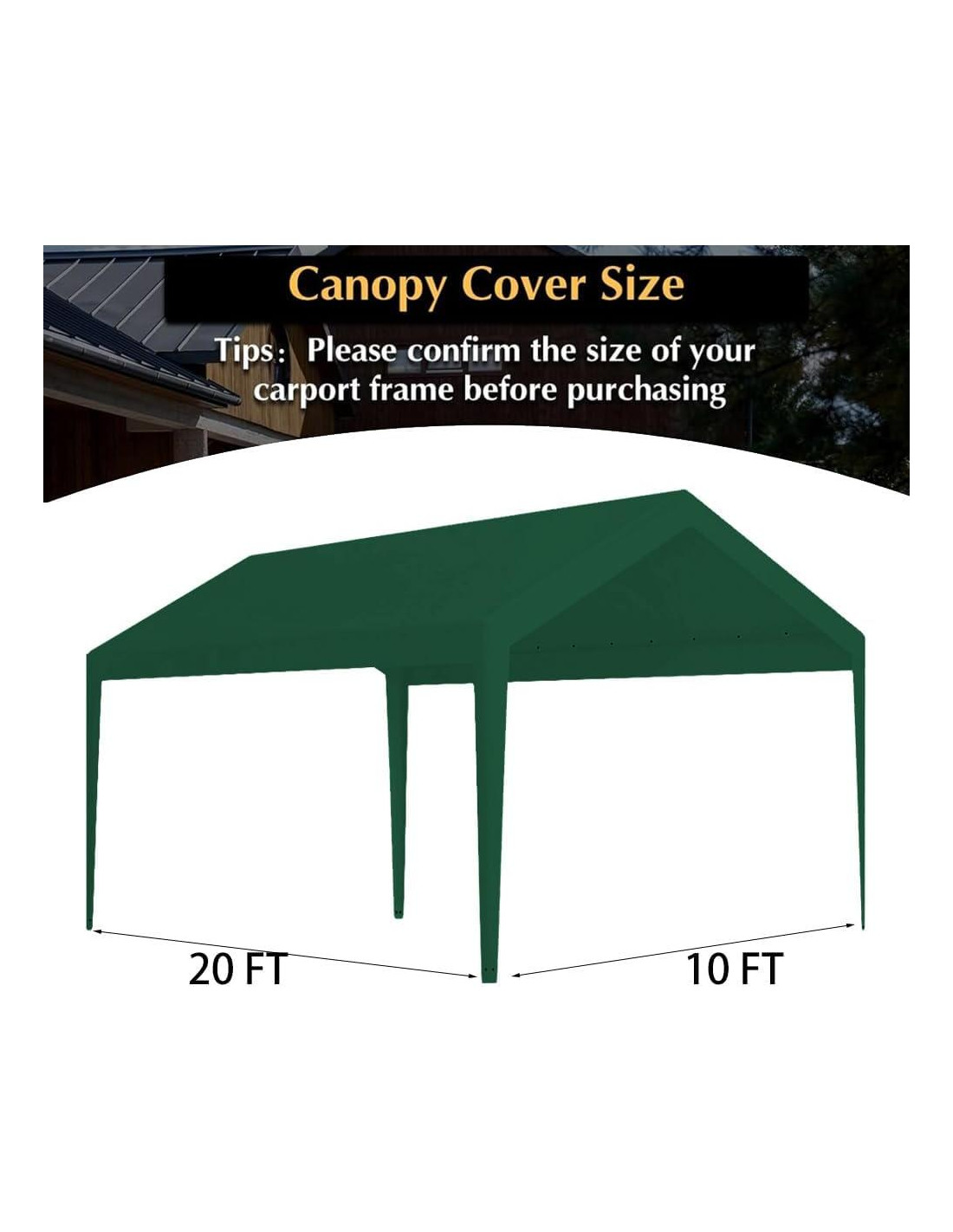 - Tamaño de la Carpa de Carport 10'x20' Carpa para automóvil con borde y mismas faldas de poste de pierna de tela, esta cubierta de carport de reemplazo resistente está hecha para ajustarse a marcos de 10'x20'. Recomendamos medir el marco antes de comprar.