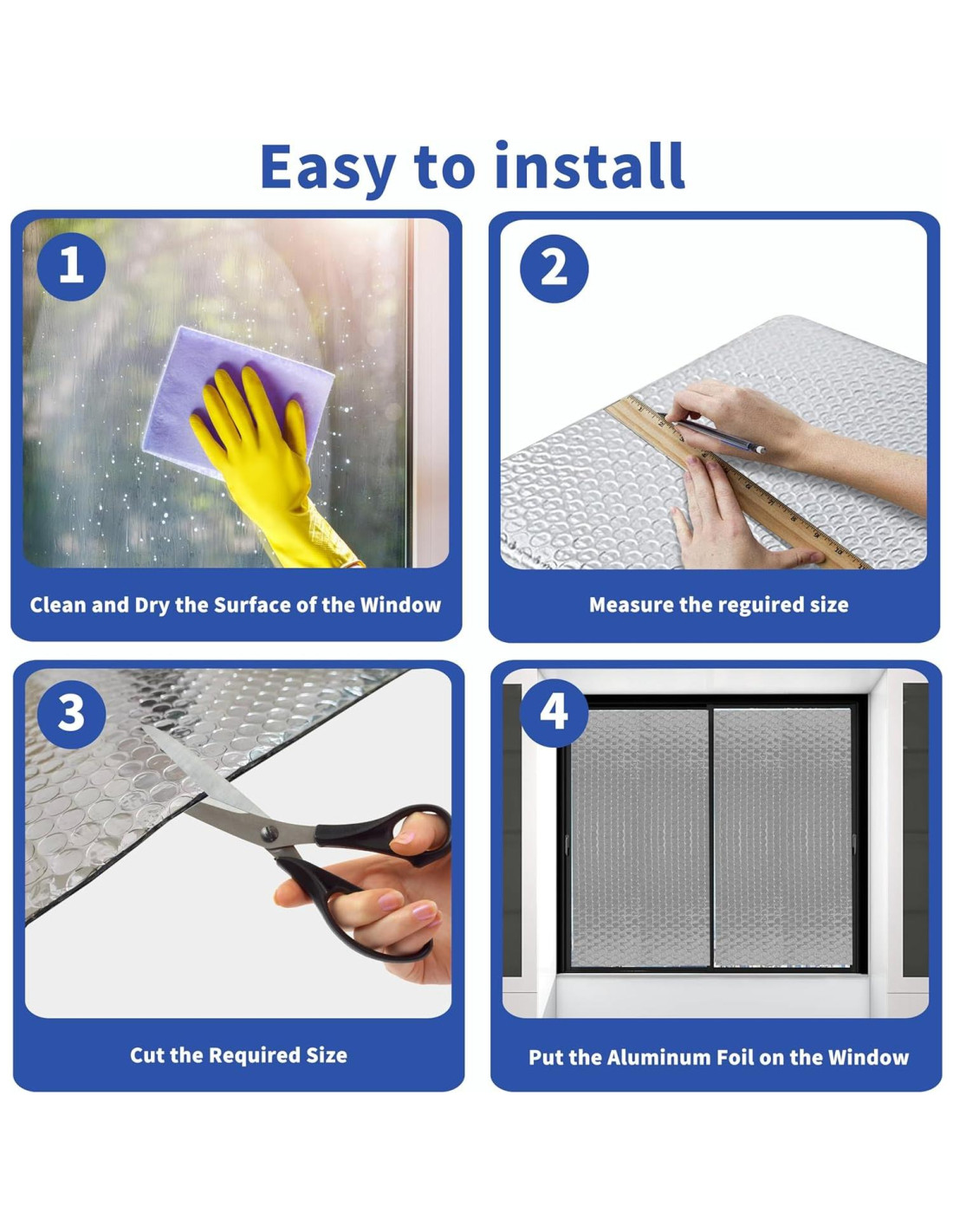 - Aislamiento Reflectante Ahorra Energía: El aislamiento de ventana es excelente para retener energía en interiores y es impermeable, lo que lo hace adecuado tanto para uso en interiores como exteriores.