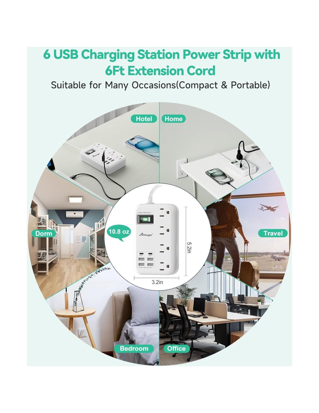 Toma de Corriente de Viaje de 6 USB