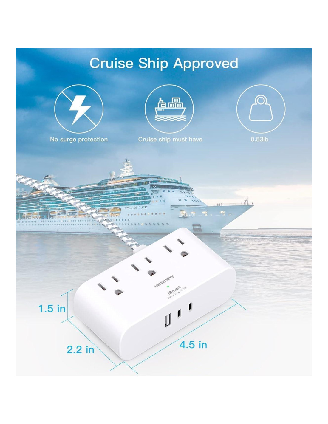- Aprobado para Cruceros y Esenciales de Viaje Diseñada sin protección contra sobretensiones, esta regleta está aprobada para cruceros y se puede usar de manera segura en la mayoría de las líneas de cruceros. También es un imprescindible para estudiantes universitarios que buscan mantener sus dormitorios organizados, ofreciendo una forma ordenada y eficiente de cargar múltiples dispositivos. Su diseño compacto y funcional la convierte en una adición versátil a cualquier configuración de viaje o hogar, ofreciendo conveniencia sin compromisos
