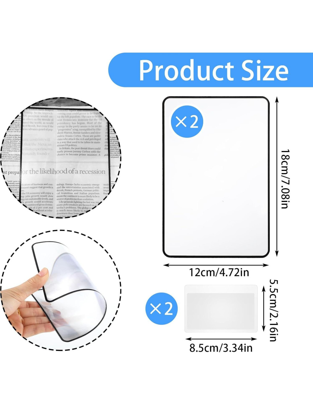 - Experiencia de Visualización Ampliada Esta hoja de aumento rectangular ofrece un área de visualización amplia, dos aumentadores 3x 12x18cm, y dos aumentadores 5x 8.5x5.5cm.
