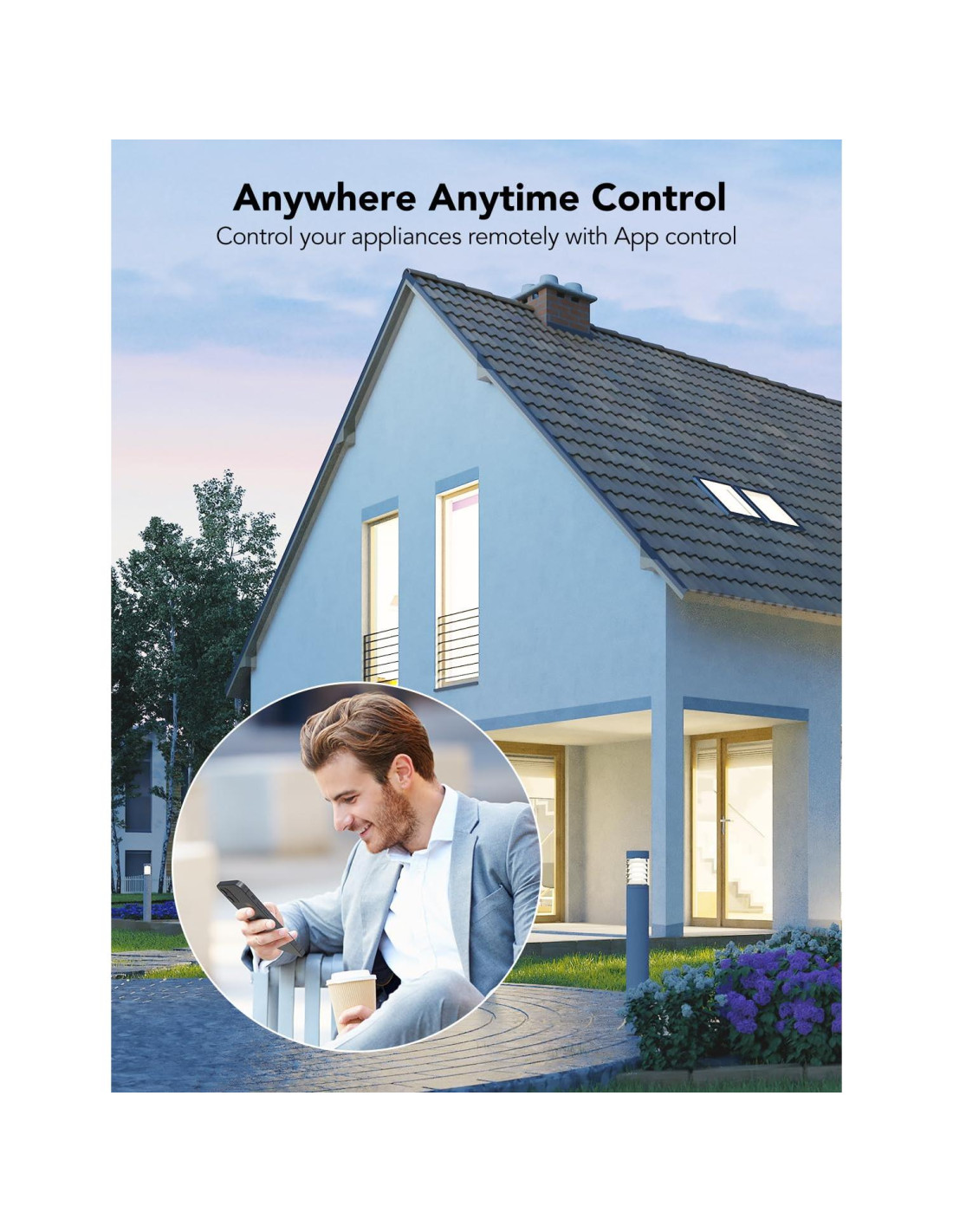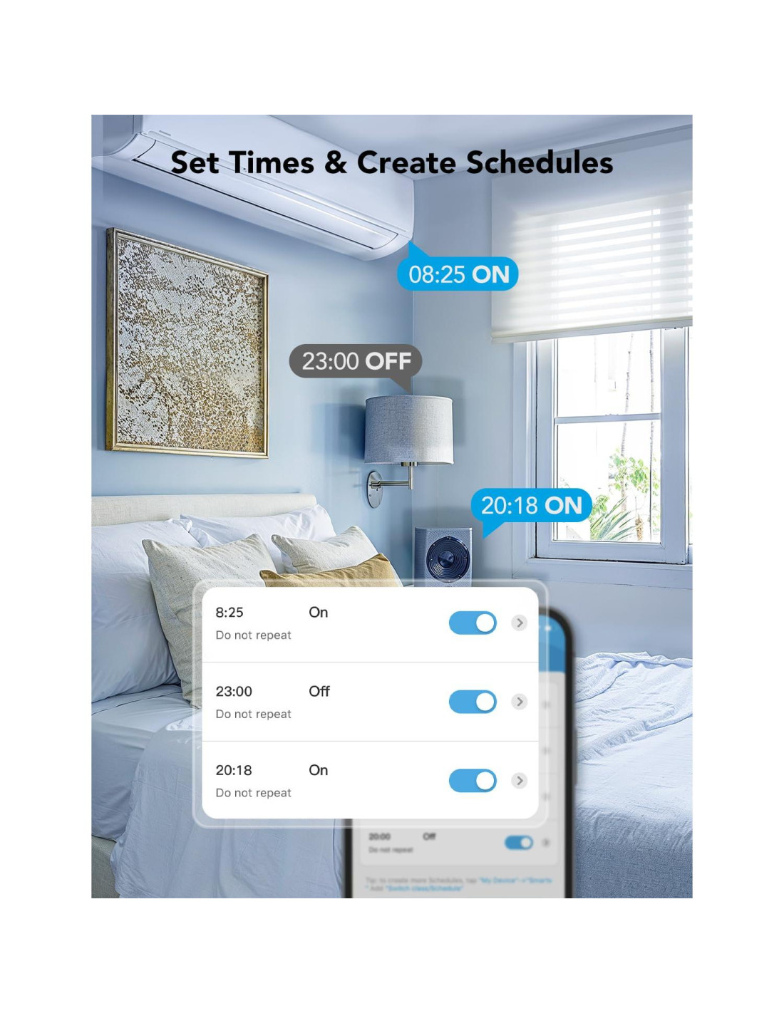 - Configura Temporizadores Automatizados: Crea temporizadores personalizados y horarios de encendido/apagado para todos tus dispositivos y electrodomésticos electrónicos alimentados por el Enchufe Inteligente, ayudando a ahorrar energía y facturas mensuales.