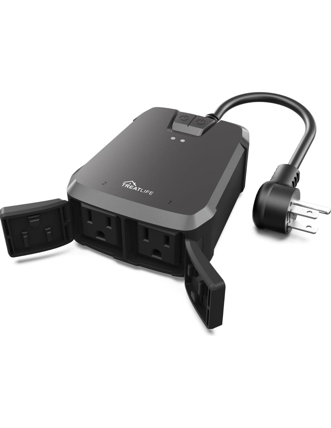 - Control Individual de 2 Salidas en 1: El enchufe exterior tiene dos salidas controladas individualmente, aparecerá como dos dispositivos separados. Enciende/apaga luces de cadena exteriores, luces de patio, bombillas de San Valentín y luces navideñas por separado o juntas al mismo tiempo. Agrupa tus bombillas inteligentes Treatlife, enchufes y interruptores para un control sin interrupciones. Ideal para controlar todos tus dispositivos simultáneamente con un solo toque