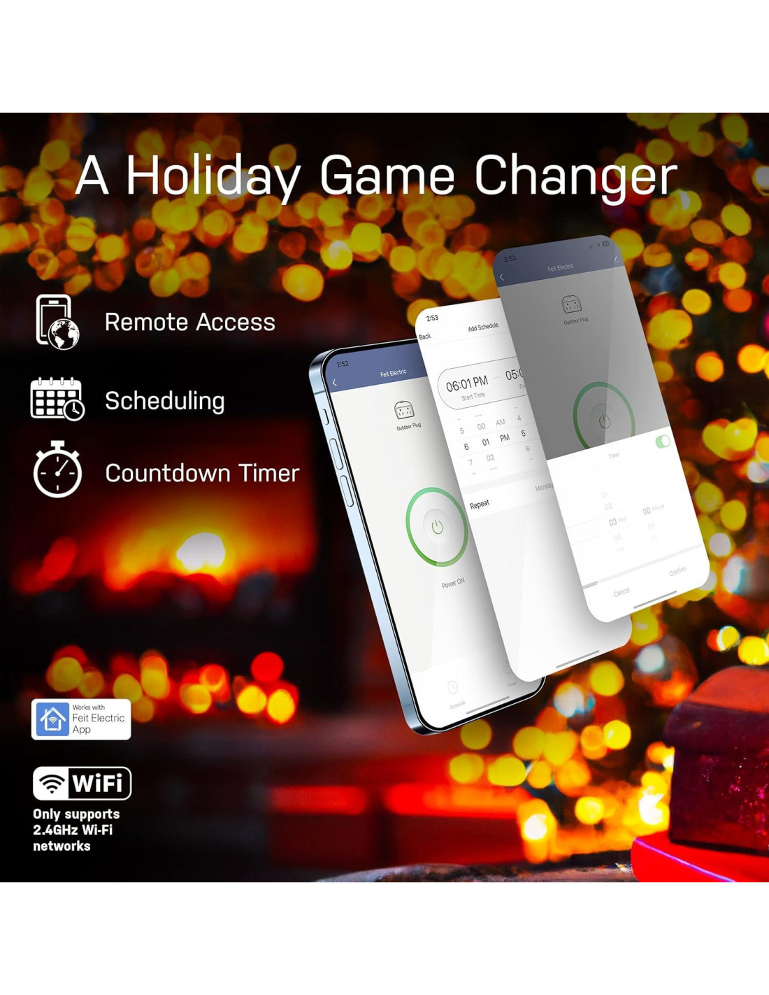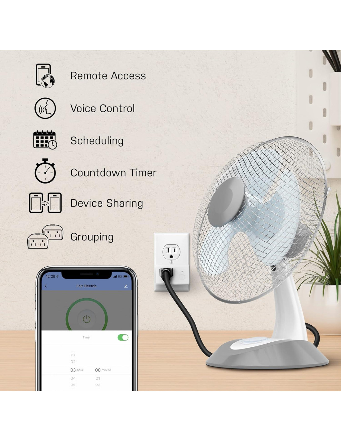 - WIFI HABILITADO PARA CONTROLAR DESDE CUALQUIER LUGAR - Compatible con red Wifi de 2.4 GHz. Controla tus electrodomésticos a través de tu enchufe wifi con la aplicación Feit Electric desde cualquier lugar dentro o fuera de tu hogar. La aplicación para smartphone permite compartir para que múltiples usuarios puedan controlar.