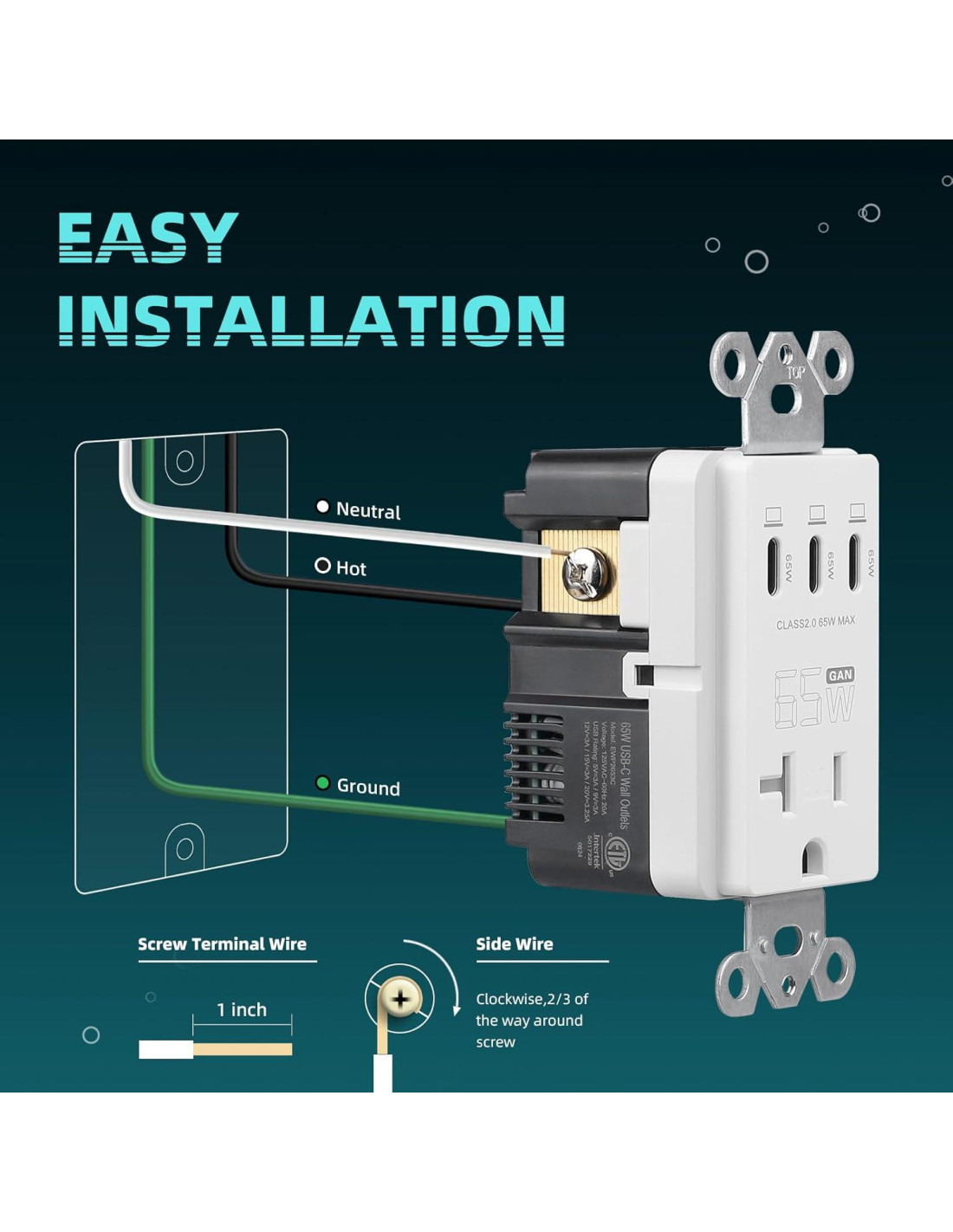 - Fácil de Instalar: Toma de corriente eléctrica soporta cableado lateral o trasero y se adapta a cajas de pared estándar. Incluye una elegante placa de pared sin tornillos para un aspecto limpio y moderno. Perfecto para hogares, oficinas, escuelas, laboratorios, bibliotecas y espacios comerciales