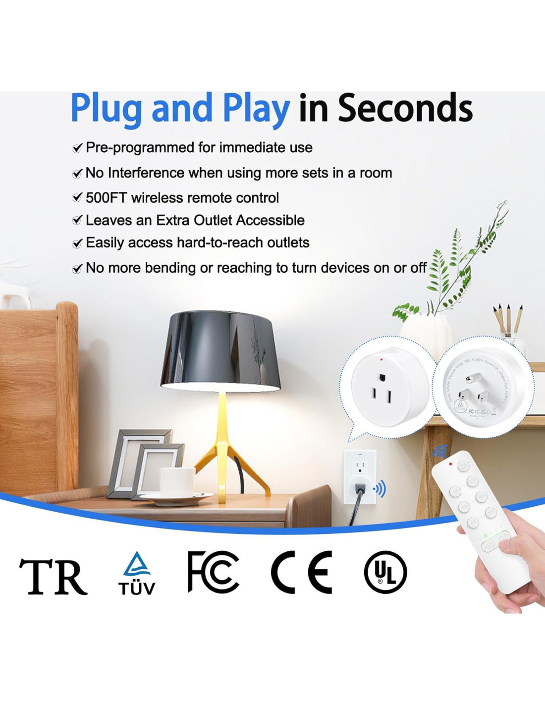 - [Enchufar y Usar en Segundos] Cada Kit de Enchufe de Control Remoto Inalámbrico contiene todo lo que necesitas para comenzar (¡incluso las baterías del control remoto!). Simplemente enchufa y usa, o sincroniza los enchufes según tus necesidades, no se requiere wifi ni herramientas. Controla electrodomésticos y luces de difícil acceso con solo presionar un botón, ideal para personas mayores o cualquier persona con movilidad limitada.