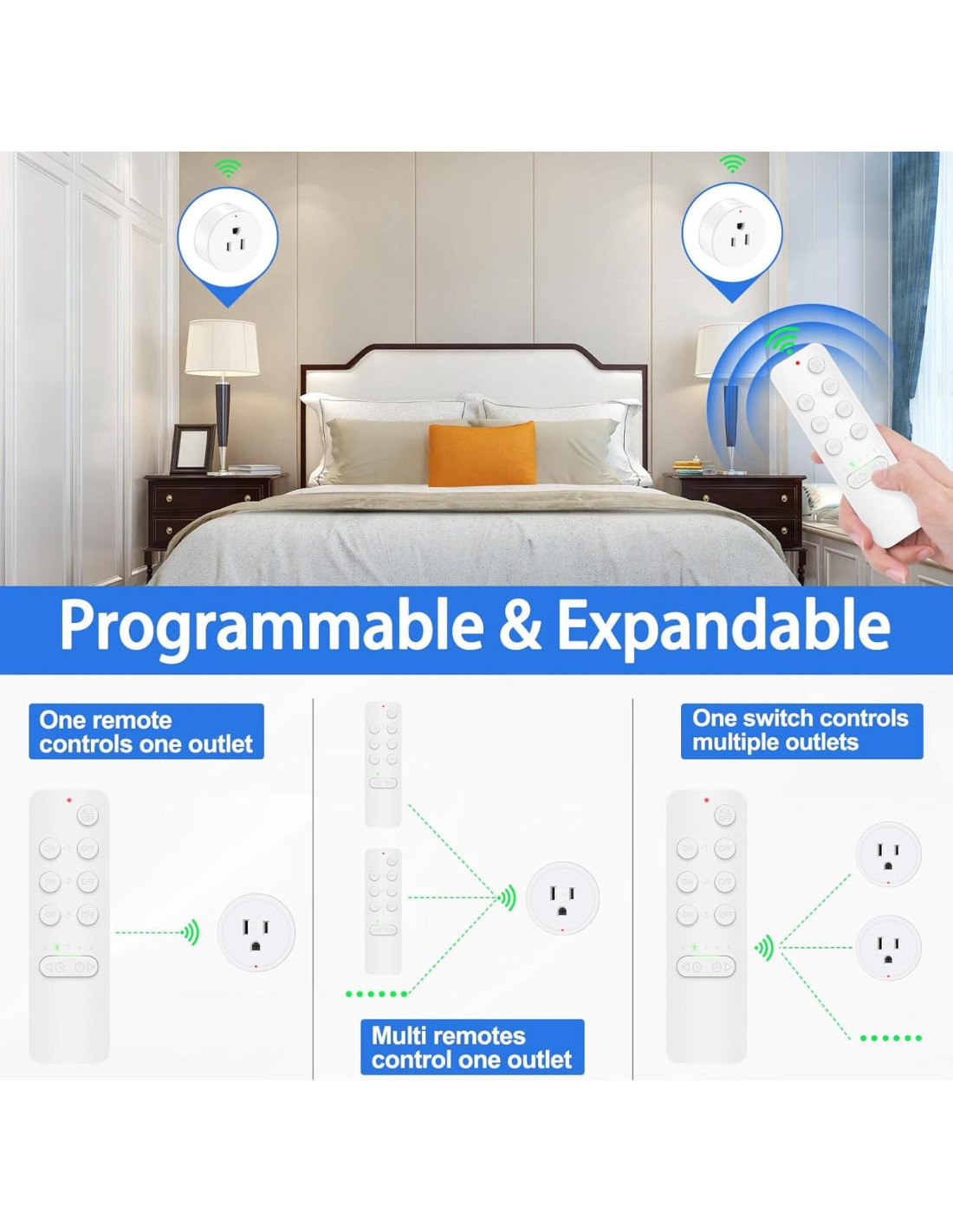 - [DIY Emparejar Como Te Guste] Disponible para agregar controles remotos adicionales, enchufes, interruptores y portalámparas; El control remoto y el enchufe han sido preprogramados para su uso inmediato. Programa y expande el interruptor de control remoto inalámbrico a voluntad, permitiendo que un interruptor controle múltiples enchufes a la vez o múltiples interruptores controlen un enchufe a la vez; Solo un clic para controlar todo; También funciona con otros receptores y portalámparas.