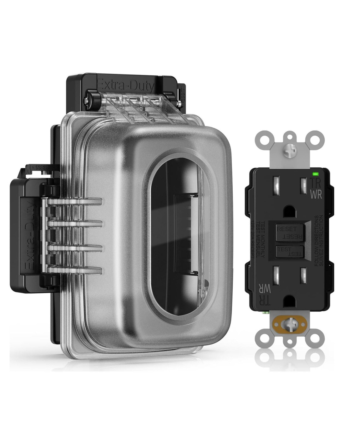 - [Combo eléctrico exterior definitivo] Mejora tus espacios exteriores con este toma de corriente GFCI de alto rendimiento y conjunto de cubierta a prueba de intemperie, proporcionando una configuración eléctrica completa y segura para uso exterior.