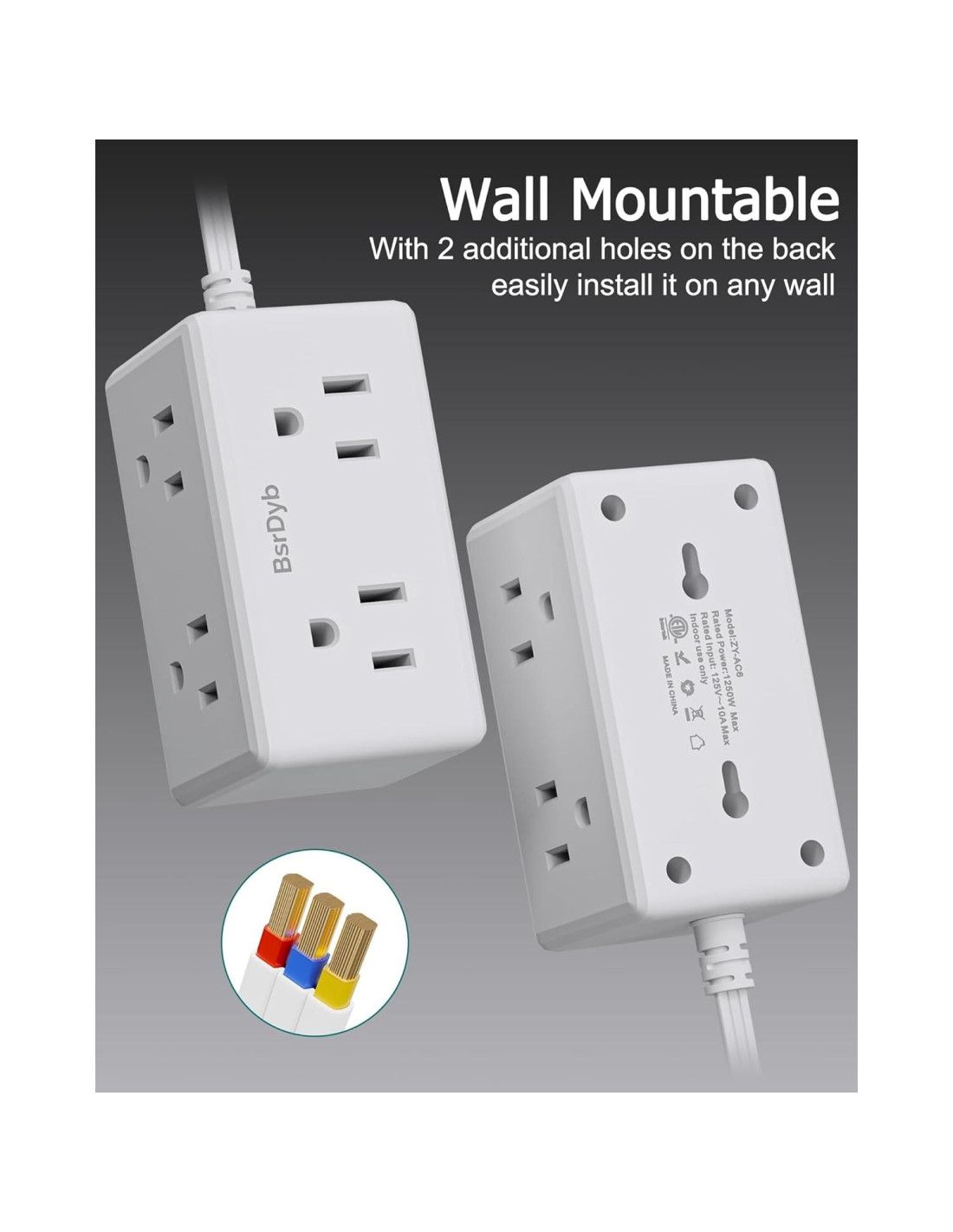 - 6 EN 1 regleta de enchufes de extensión - Con 6 tomas de corriente de CA, nuestra regleta puede acomodar tanto enchufes planos de 2 como de 3 clavijas comúnmente utilizados en América del Norte. Ya sea que necesites alimentar múltiples dispositivos en tu dormitorio universitario, hogar, oficina, dormitorio o cocina, esta regleta es un accesorio imprescindible.