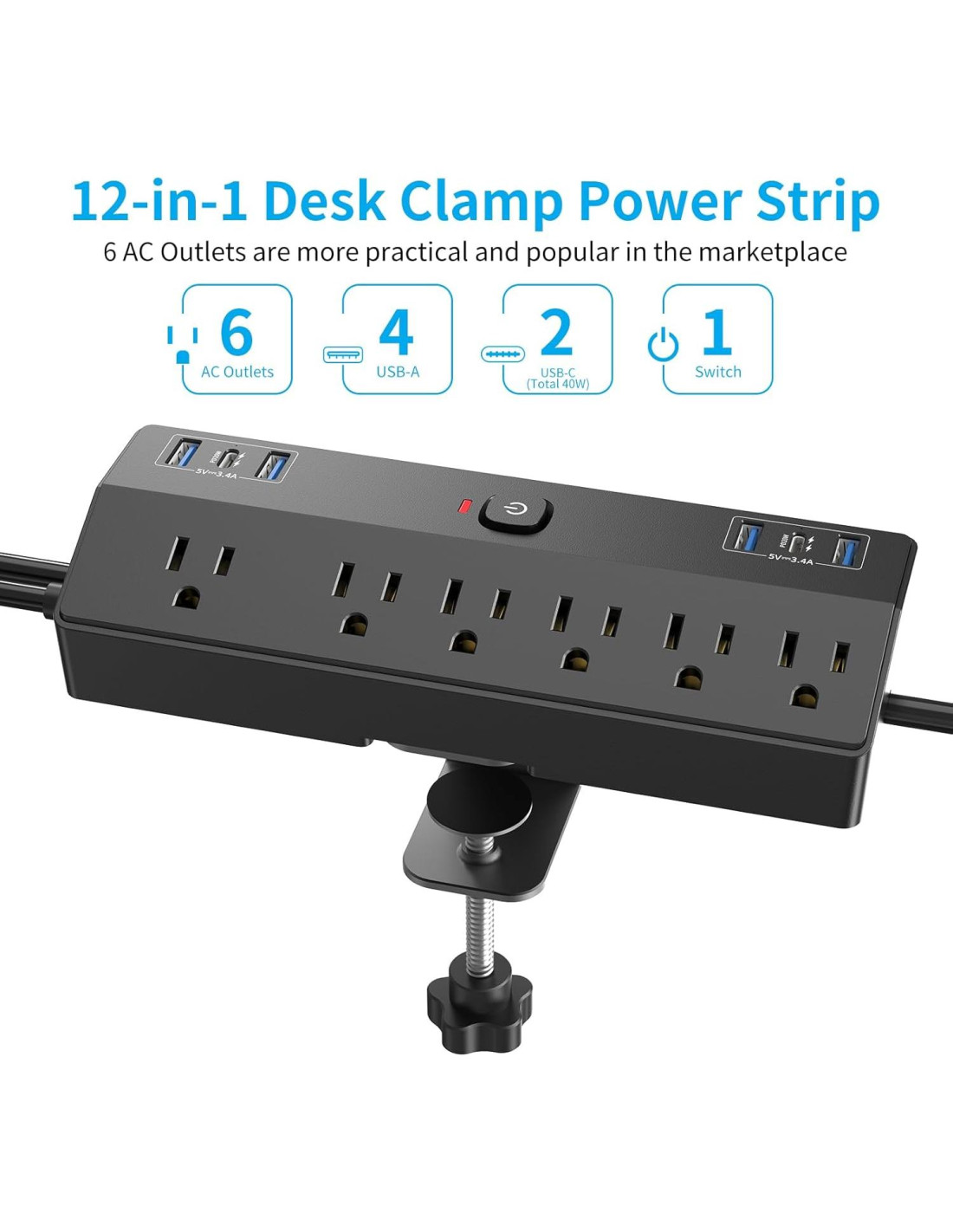 - [12-en-1 Toma de corriente con abrazadera de escritorio] - Esta toma de corriente de escritorio con múltiples salidas combina 6 salidas de CA (1625W 13A) y 6 puertos USB (4 USB-A, 2 USB C 20W) en una estación de energía para proporcionar energía y carga para hasta 12 dispositivos eléctricos desde esta unidad única, aliviando fácilmente tus problemas eléctricos.