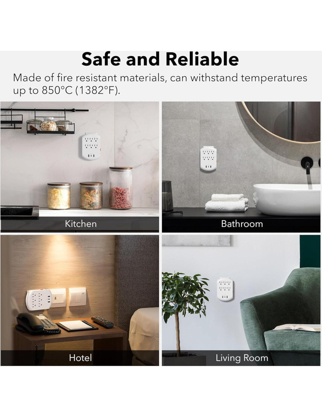 Un distribuidor directo de productos de mejora del hogar de calidad premium. Nos esforzamos por proporcionar mejores productos y servicio postventa para ayudar a que la vida de cada cliente sea más fácil y conveniente. Nuestros Productos: Extensor de Enchufe Múltiple con Puertos de Carga USB Adaptador de Viaje Tipo-C y Adaptador de Viaje Tipo-G para Conversión de Voltaje Calificación de salida combinada USB: 5V/3.4A Calificación de salida USB individual: 5V/2.4A Luz nocturna LED: APAGADO/controlado por fotocélula Calificación de voltaje: 125VAC Calificación de carga: 1875W/15A Nuestro extensor de enchufe cuenta con una ranura especialmente diseñada, perfecta para sostener de manera segura su teléfono mientras se carga. Este soporte proporciona un lugar seguro y estable para su dispositivo.