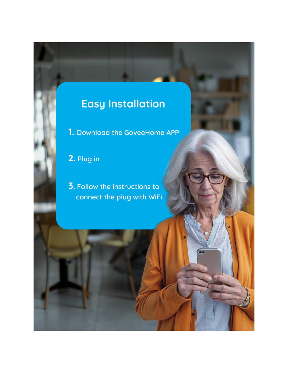 - La Seguridad es Prioridad: El enchufe wifi no solo está completamente certificado por la FCC y ETL, sino que también utiliza materiales y construcciones resistentes al fuego para ser un socio inteligente seguro. Nota: Los usuarios deben crear una nueva cuenta en la APP Govee Home o estar conectados para usar este Enchufe Wi-Fi.