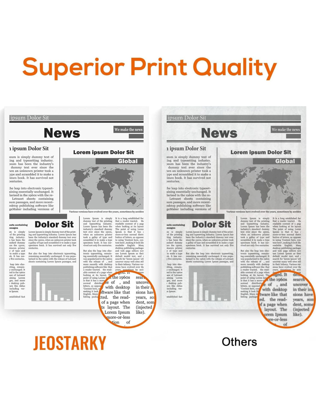 Establecido en 2017, Jeostarky se compromete a producir cartuchos y tóners. Nuestros productos pasan por pruebas rigurosas para garantizar rendimiento y fiabilidad. Los clientes pueden confiar en que cada cartucho de tinta y tóner Jeostarky que compren ofrecerá los mismos resultados de alta calidad. Continuamente ampliamos nuestra gama de productos para satisfacer las necesidades cambiantes de los clientes, ya sea para documentos de trabajo o fotos impresionantes. Cuando instalo el cartucho de tóner TN830XL, aparece el mensaje "Tóner No Brother". ¿Qué debo hacer? Nuestro TN830XL es un cartucho de tóner con chip de alta inteligencia. Si aparece "Tóner No Brother" durante el proceso de instalación, simplemente haga clic en "Sí". Cuando instalo el cartucho de tóner TN830XL y encuentro el aviso "445, 446" o "Error de Cartucho". ¿Qué debo hacer? Por favor, reinicie la impresora y podrá usarse normalmente. Mi impresora es HL-L2460DW. ¿Puede adaptarse el TN830XL a ella? Nuestro TN830XL puede adaptarse a su impresora DCP-L2640DW, y también puede adaptarse a HL-L2460DW HL-L2405W HL-L2400D HL-L2480DW MFC-L2820DW MFC-L2820DW XL DCP-L2640DW. ¿Cuál es la diferencia entre TN830 y TN830XL? El rendimiento de páginas de TN830 es 1200, pero el rendimiento de páginas de TN830XL es 3000, lo que es más rentable.