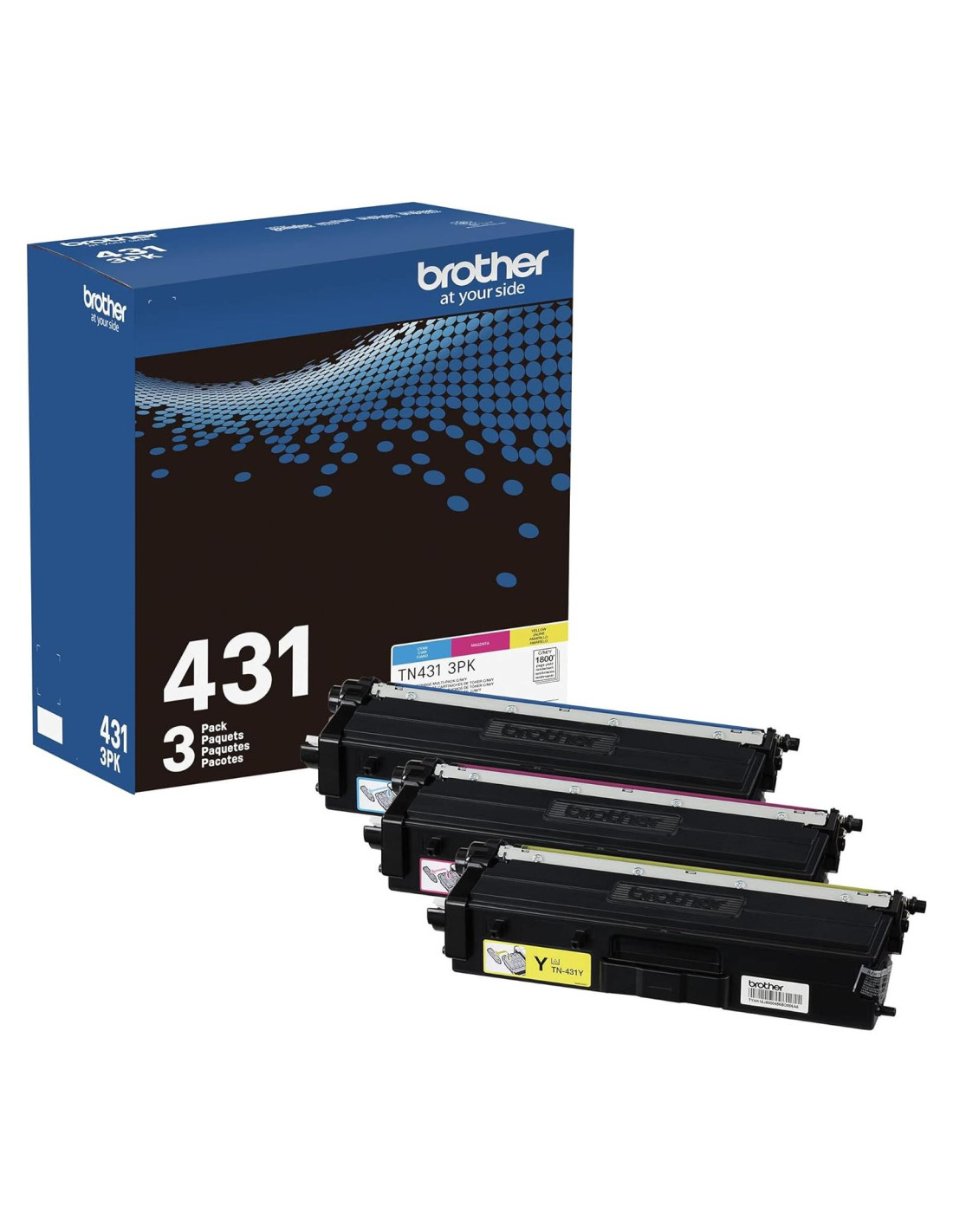 - El cartucho de tóner de color de rendimiento estándar Brother Genuine three pack TN431 3pk: contiene un cartucho de cada uno de los tóneres Cian, Magenta y Amarillo que proporciona calidad de impresión láser profesional por hasta 1,800 páginas por cartucho. (1)