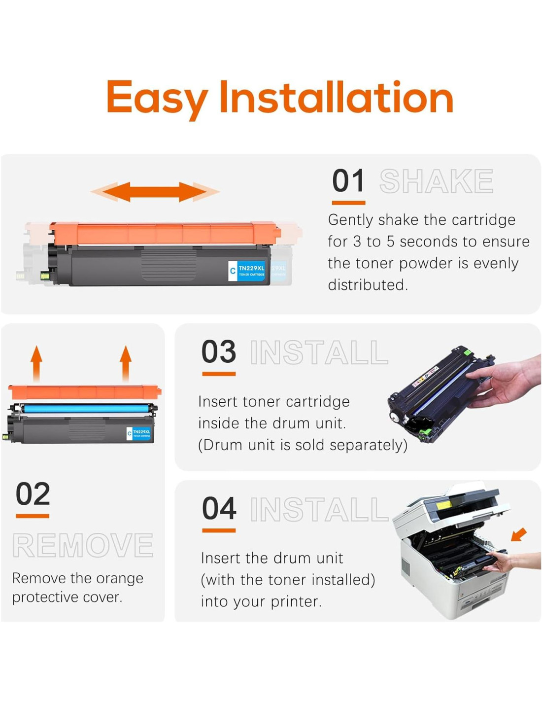 - Paquete Incluido: 2 x TN229XL negro, 1 x TN229XL cian, 1 x TN229XL amarillo, 1 x TN229XL magenta y 1 x guía del usuario