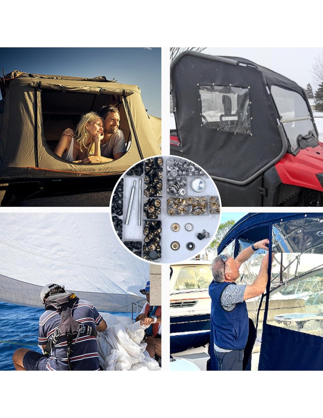 - Amplia Aplicación: Los Tornillos de Botón de Lona se utilizan ampliamente para cubiertas de barcos, lonas, toldos, carpas, ropa, cuero, muebles, etc. Se pueden fijar a la superficie. Adecuado para uso en interiores y exteriores. Perfecto para DIY.