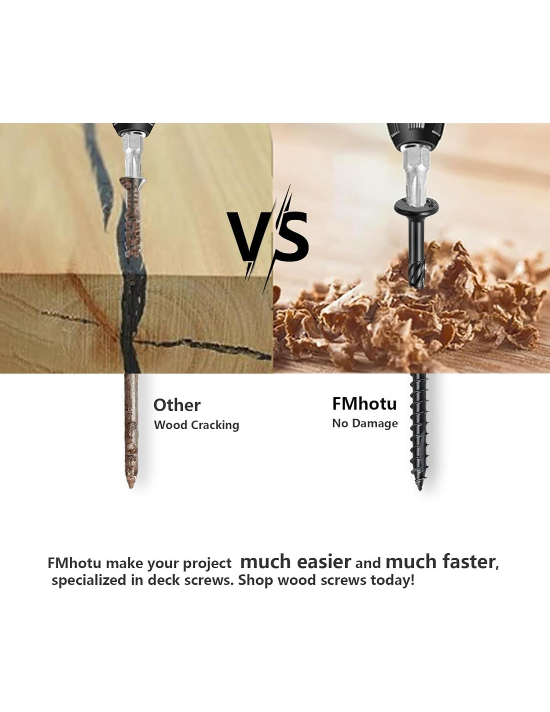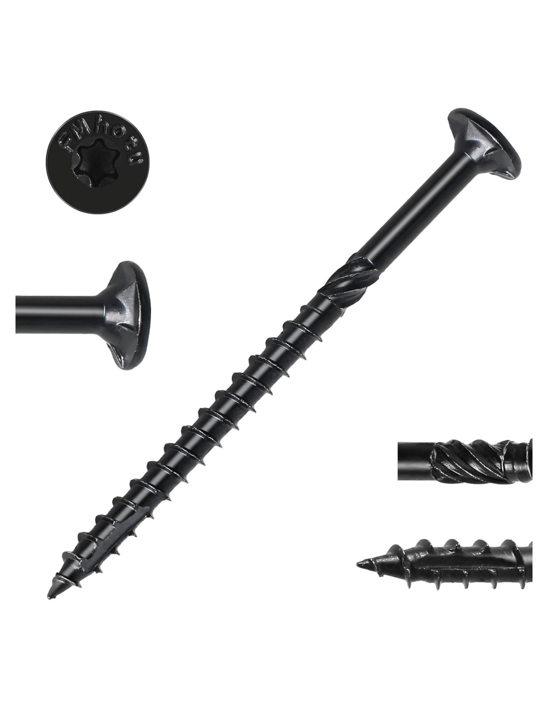- Material de Calidad: Estos tornillos de madera de alta resistencia están hechos de acero de aleación de alta calidad y son compatibles con madera tratada con ACQ. Están diseñados para durar y pueden soportar condiciones exteriores severas.