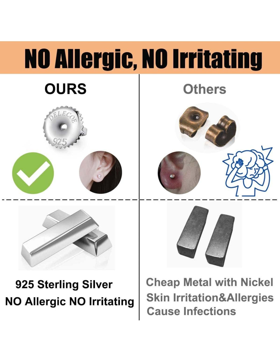 - NO ALERGÉNICO Y NO IRRITANTE Y NO DESVANECIDO DELECO Tornillo de Respaldo de Aretes utiliza materiales reales de plata esterlina 925 y chapado en oro amarillo de 14K, libre de níquel, libre de plomo, no irritante para oídos sensibles, hipoalergénico. Manteniendo los tornillos de respaldo duraderos y brillantes para siempre.