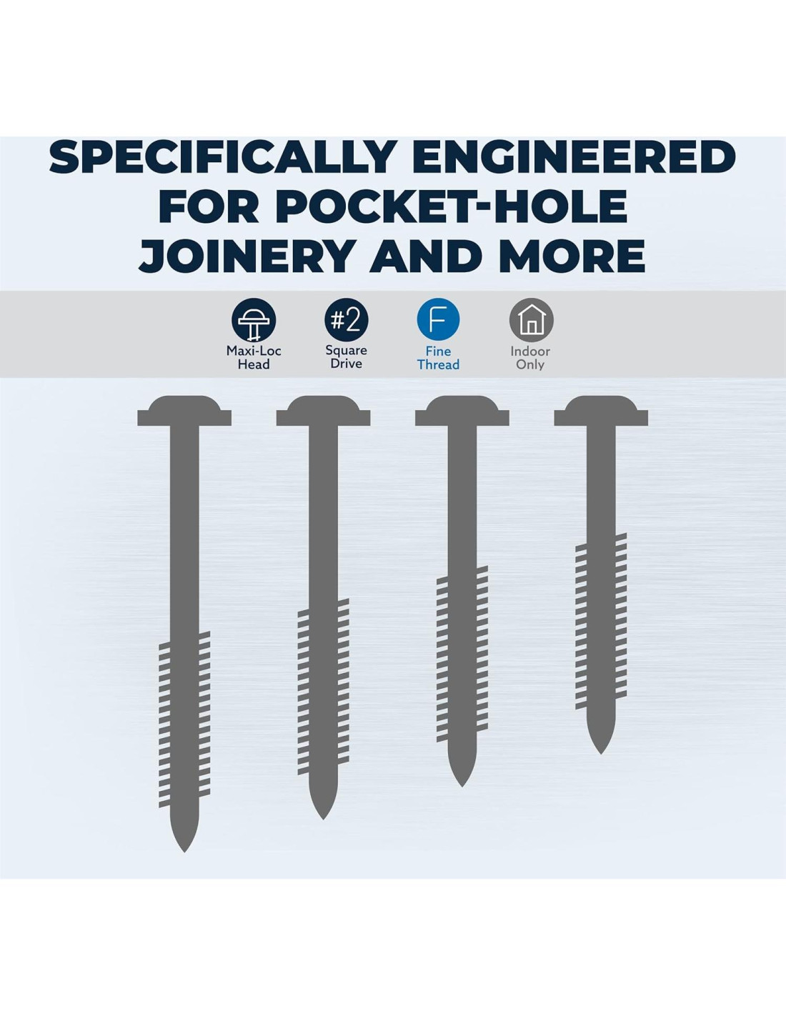 - Tornillo de bolsillo de zinc premium: tornillos de rosca fina de 1 1/4 pulgadas (31.75 mm) tienen cabezas Maxi-Loc para materiales más duros