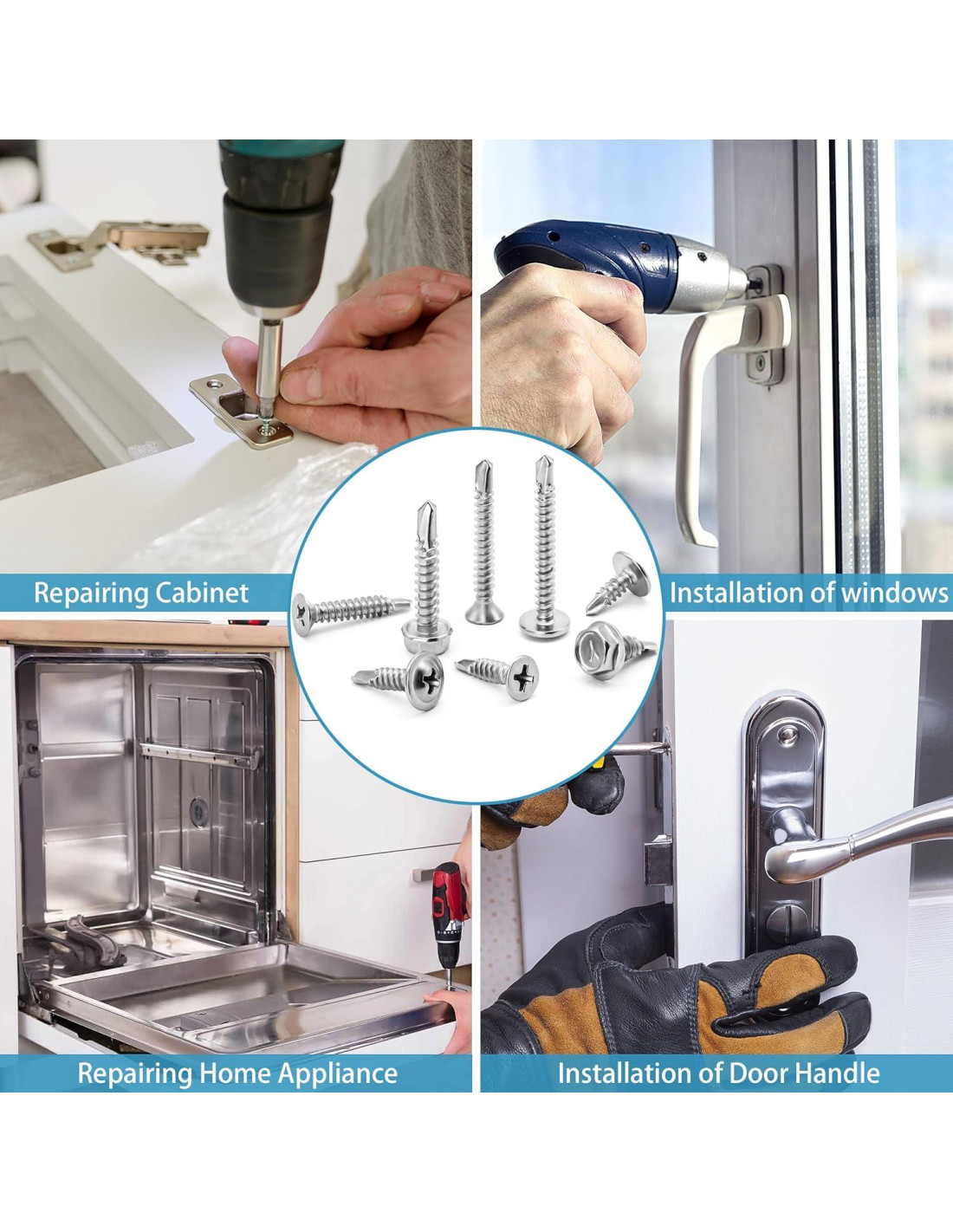 - [Amplia aplicación] : Tornillos autoperforantes para metal sin necesidad de perforar previamente, se pueden utilizar ampliamente en metal, madera, plástico y a veces también para conectar varias placas, normalmente se utilizan en muchos campos como el hogar, la construcción, la industria, etc.