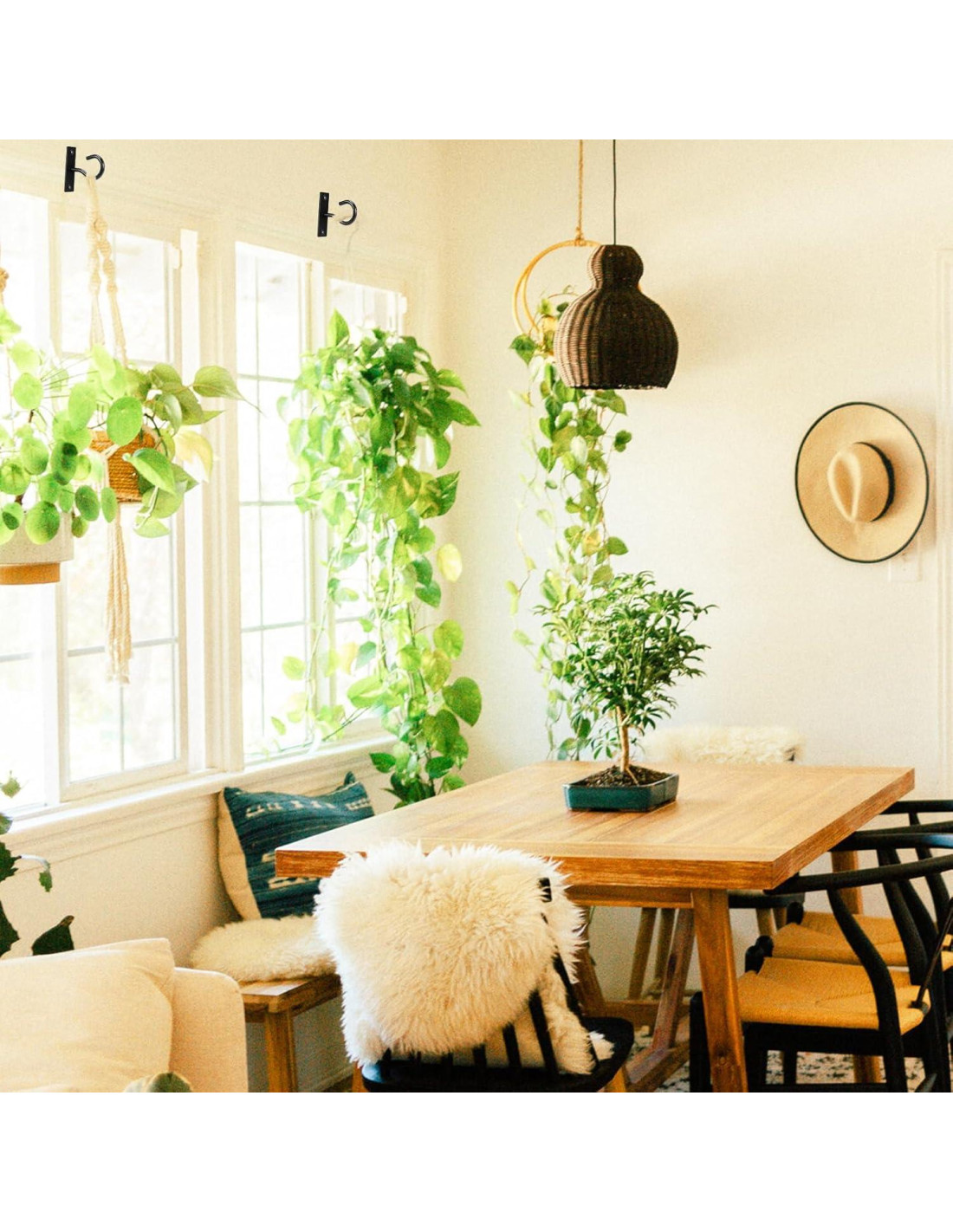 - Ganchos de Pared de Base Estrecha que Ahorran Espacio: En comparación con los ganchos de planta anchos que ocupan más espacio de instalación, nuestros ganchos para colgar plantas con diseño de base estrecha no solo son fuertes y duraderos, sino que también ahorran valioso espacio de instalación.