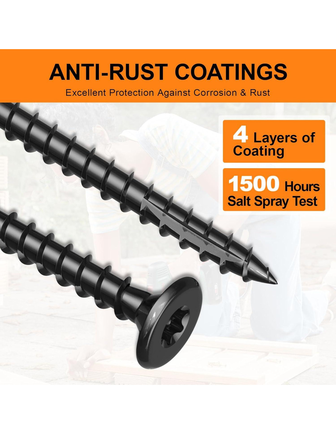 - Acero Aleado Premium: Fabricados con acero aleado de alta calidad, estos tornillos para madera están especialmente diseñados para resistir las inclemencias del tiempo, asegurando durabilidad para uso en exteriores con madera tratada ACQ.