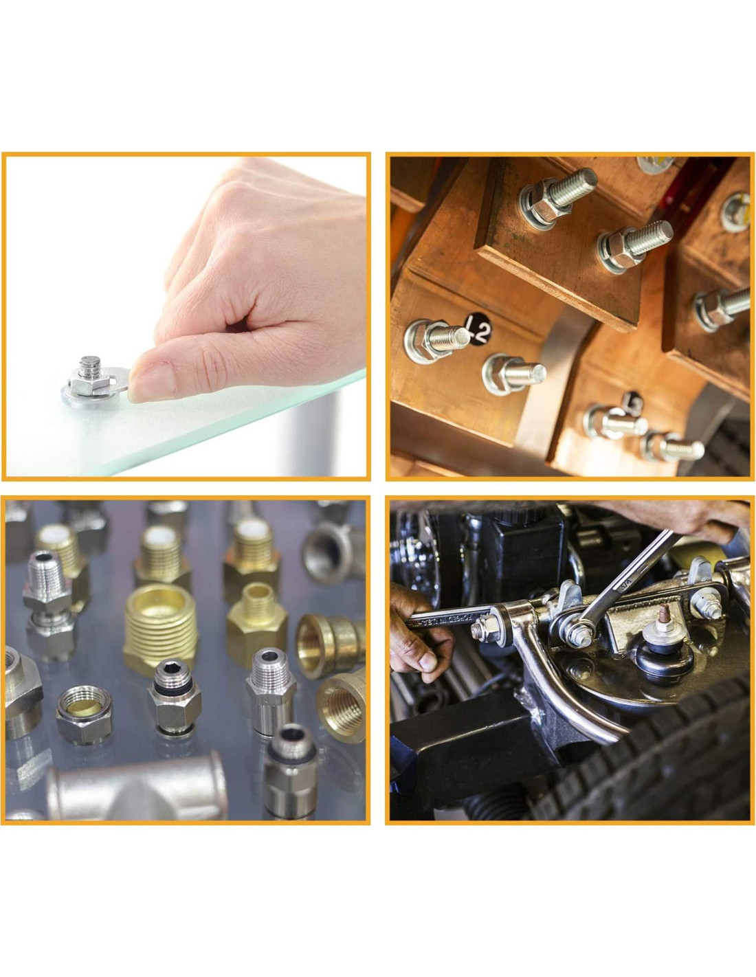 - Tornillos de cabeza hexagonal plana que son altamente versátiles y se utilizan para unir metal, madera, fibra de vidrio y plástico. Excelente para manijas de puertas, grifos, accesorios de luz, perillas, cerraduras y juguetes, fontanero y otras pequeñas reparaciones alrededor del taller, garaje o hogar; y todo tipo de maquinaria de precisión, instrumentos clasificados, productos electrónicos, electrodomésticos, productos de comunicación.
