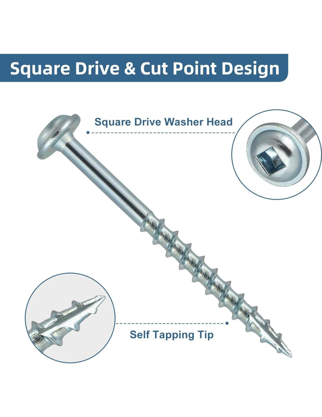 - Previene el Deslizamiento: El diseño de cabeza cuadrada hace que manejar estos tornillos para agujeros de pocket sea muy fácil, no se deslizan. Los tornillos de rosca gruesa funcionan bien con maderas blandas, mientras que las maderas más duras necesitan un agujero piloto