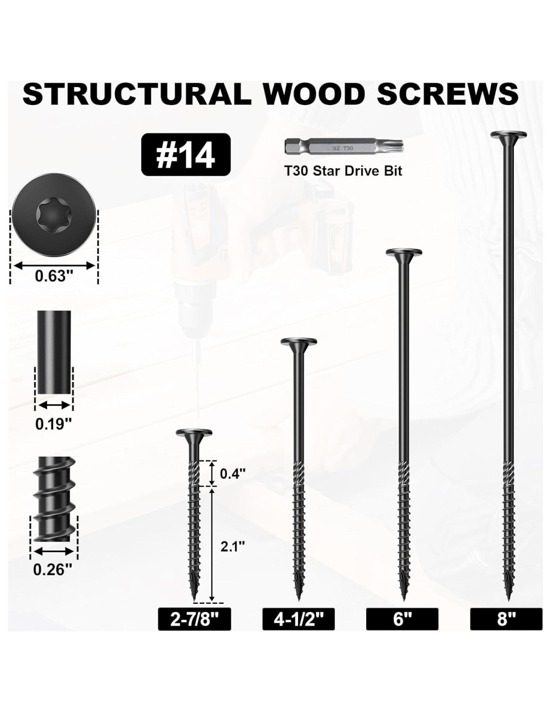- Material de Calidad: Estos tornillos de madera de alta resistencia están hechos de acero de aleación de alta calidad y son compatibles con madera tratada con ACQ. Están diseñados para durar y pueden soportar condiciones exteriores adversas.