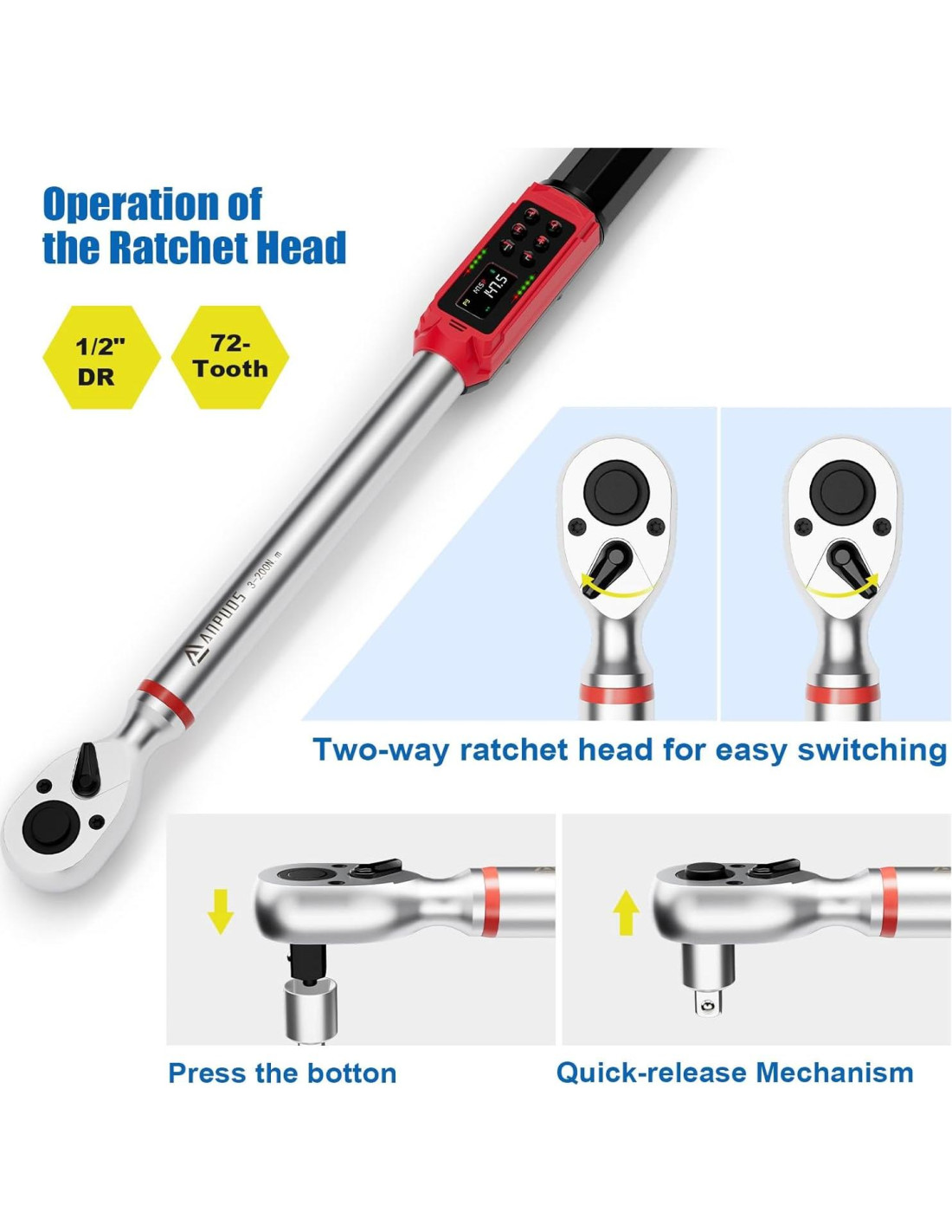 - [+/-1% Alta Precisión] Esta llave de torque digital de 1/2 pulgada alcanza +/-1%, con configuraciones de torque ultra precisas que te permiten operar equipos electrónicos, equipos de computación e instrumentos de precisión con facilidad y confianza.