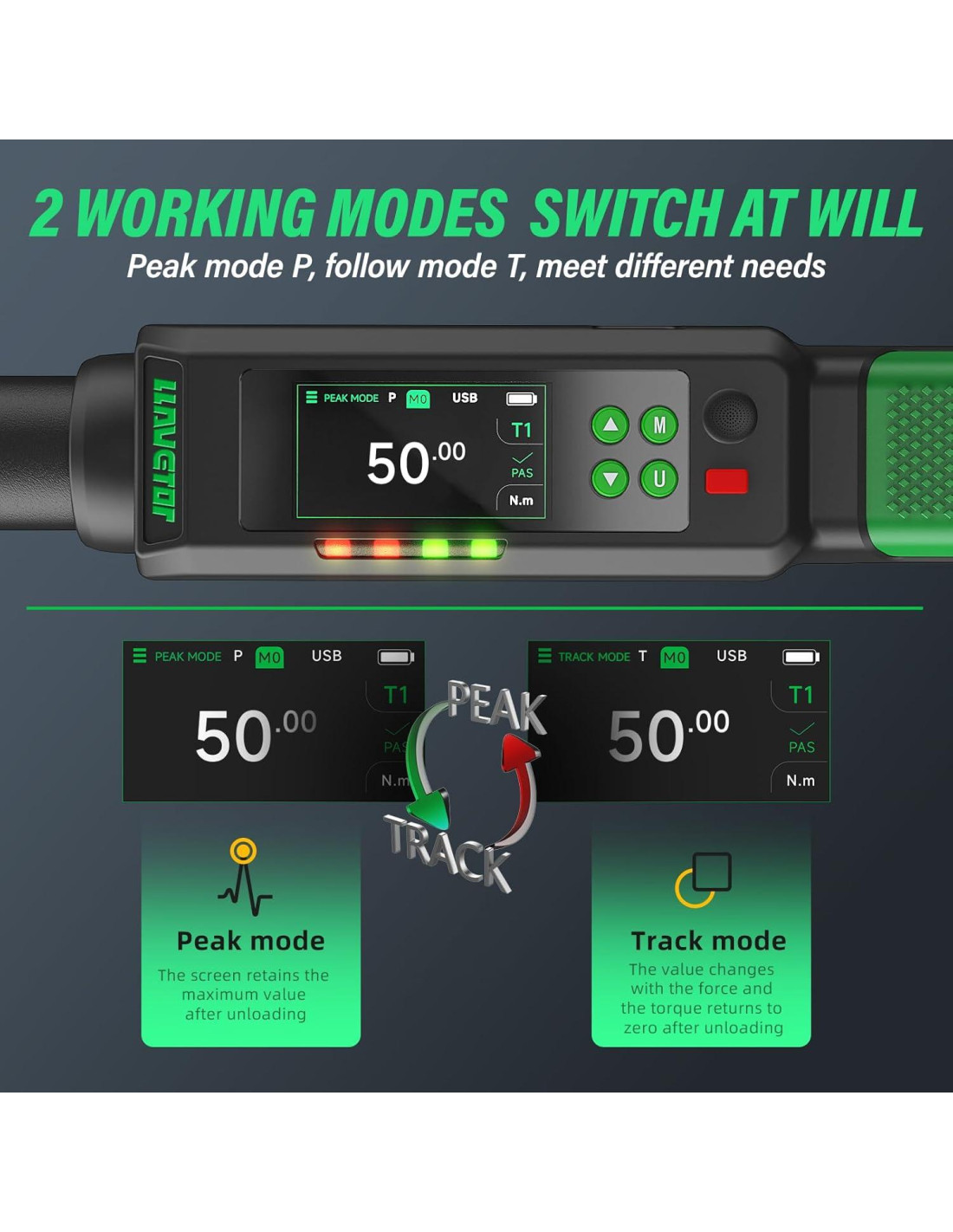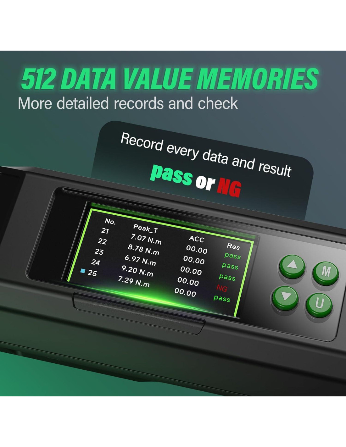 - Precisión Digital de Alta Calidad Precisión profesional (+/-2%), asegurando mediciones de torque fiables para aplicaciones automotrices, maquinaria e industriales. La pantalla digital sin retraso muestra instantáneamente los valores de torque en tiempo real