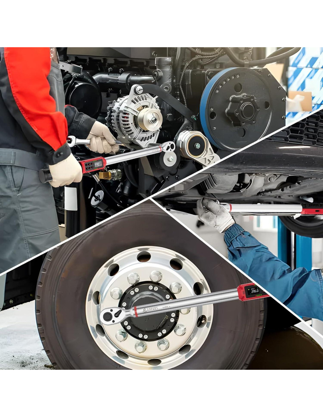- Componentes incluidos: Llave de Torque Digital 1/2" 4.4-295Ft.lb (6-400Nm), Adaptador de 1/2" a 3/8", Barra de Extensión de 125mm
