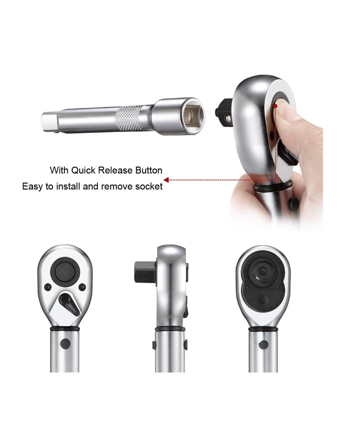 La cabeza de la llave está equipada con un botón de liberación rápida, fácil y conveniente para reemplazar el zócalo.