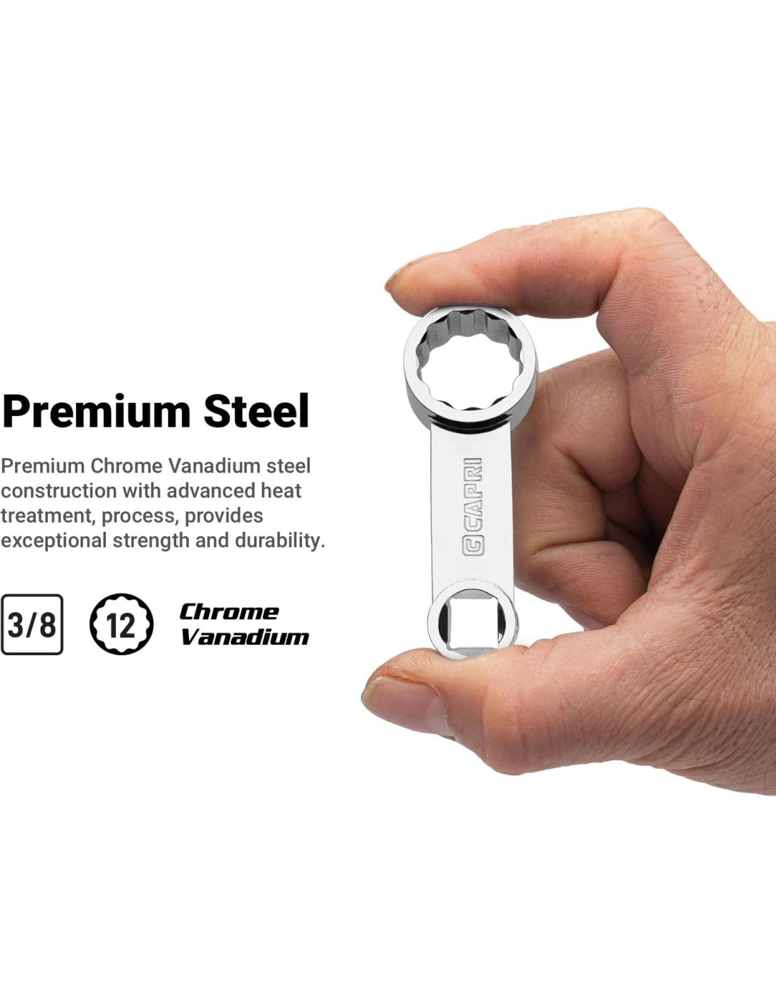 Los Adaptadores de Torque de Capri Tools extienden el alcance de tu llave de torque, permitiéndote apretar los sujetadores a un torque especificado en lugares de difícil acceso. Cada adaptador de torque de 1/2 pulg. tiene 7.62 cm (3 in.) de largo de centro a centro, lo que facilita el recalculo del ajuste de torque requerido. Los adaptadores vienen con un extremo de caja de 12 puntos que te da más ángulos y un movimiento más ajustado. Nuestro diseño de extremo de caja WaveDrive transfiere el torque de manera uniforme y previene daños y redondeo del perno. El recubrimiento MaxChrome, impecablemente pulido y terminado con una cuidadosa aplicación de recubrimiento protector de cromo, asegura durabilidad y resistencia a la corrosión. El tamaño grande estampado no se desvanecerá con el tiempo.