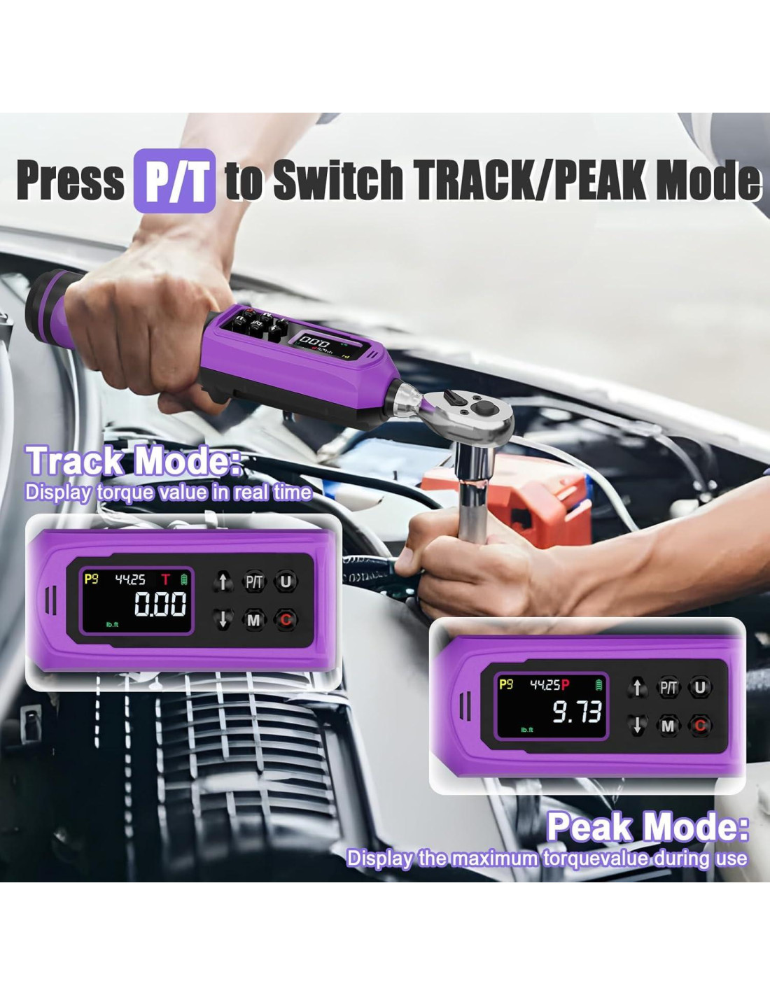 - [Protección contra Sobrecarga] La llave de torque digital 3/8 drive está equipada con un motor de vibración en el mango, que vibrará, emitirá un zumbador y un indicador LED para alertarte cuando la fuerza aplicada esté a punto de alcanzar el valor preestablecido, lo que la hace adecuada para su uso en entornos iluminados o ruidosos.