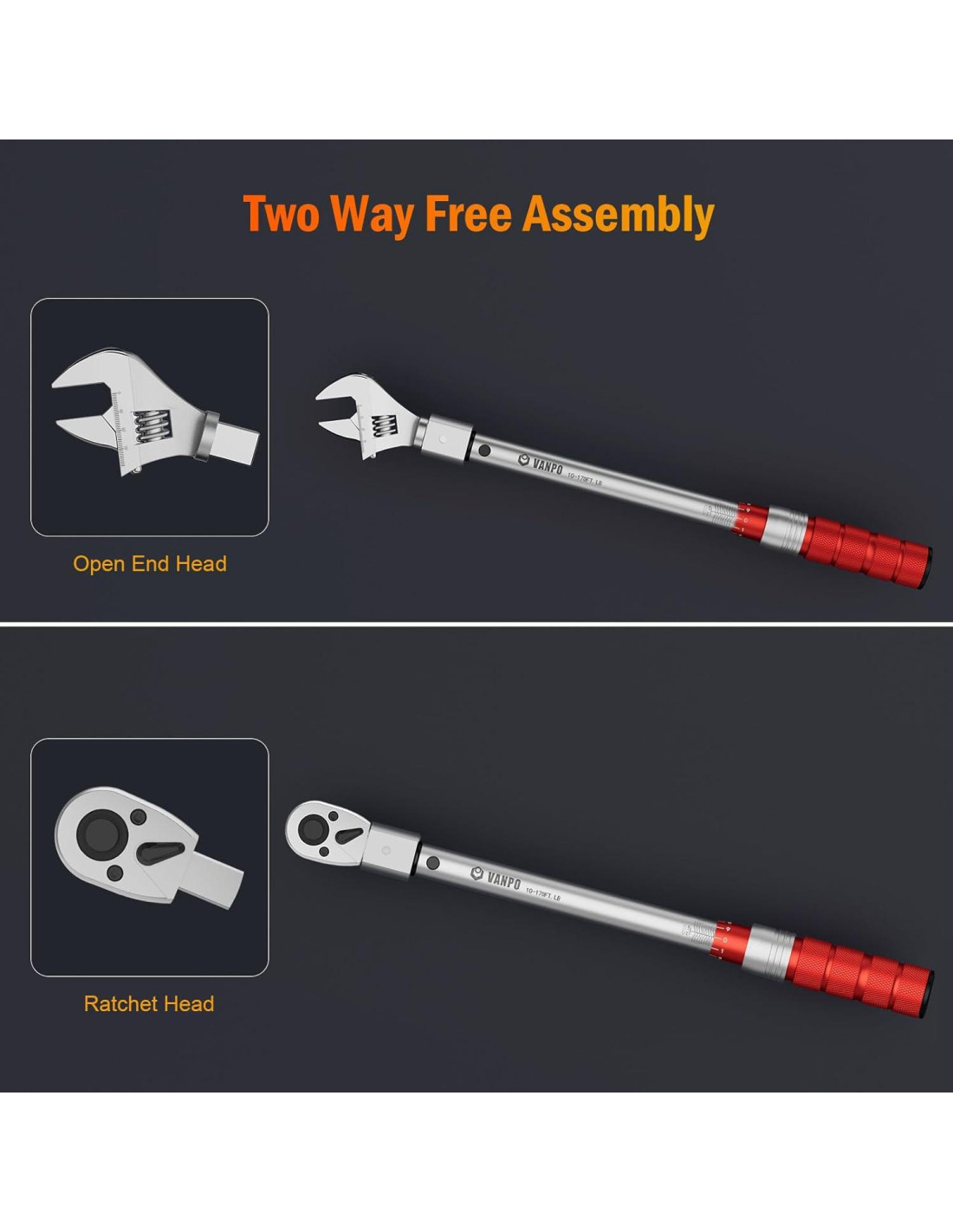 - [Dos Formas de Usar] La llave de torque ajustable mide un extremo abierto de 14mm x 18mm, está equipada con una cabeza de llave de 38mm y una cabeza de carraca de 1/2" de 72 dientes. Se pueden seleccionar libremente dos métodos de uso según sus necesidades.
