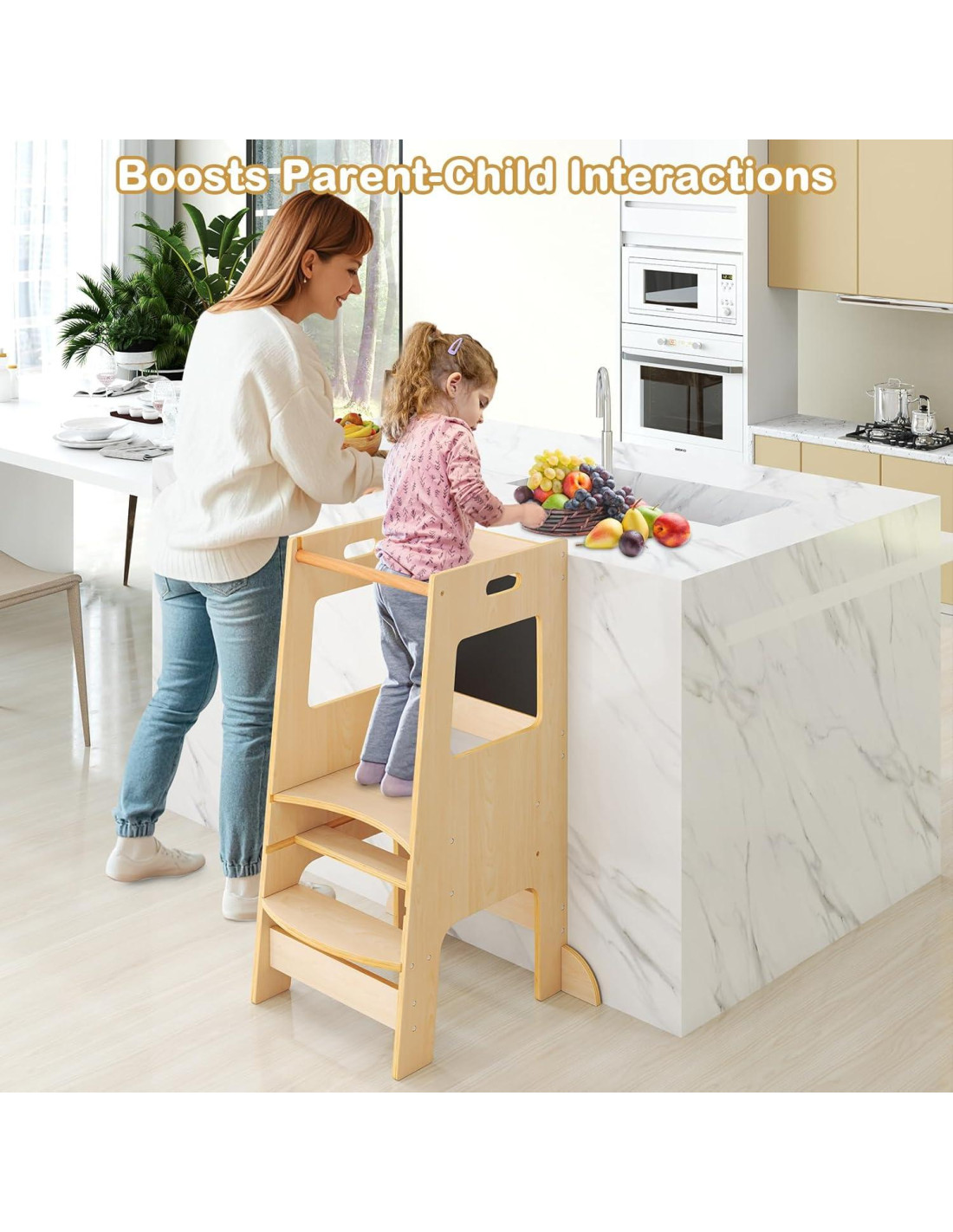 - Pizarra para Dibujar: Equipado con una pizarra de doble cara, esta torre de pie para niños pequeños también sirve como una herramienta de aprendizaje para mantener a los niños comprometidos mientras atiendes tus propias tareas. Aumenta la creatividad de los niños al ofrecer un espacio divertido para dibujar o practicar la escritura, convirtiendo las tareas diarias en momentos lúdicos.