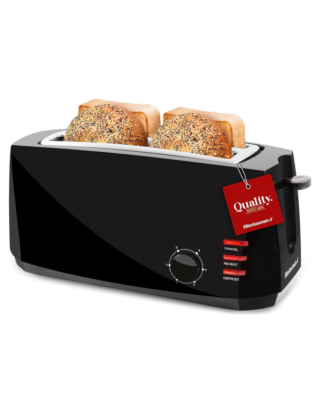 - Diseño de ranura larga que ahorra espacio - Además de tostar 4 rebanadas de pan a la vez, la forma larga ahorra espacio en la encimera de la cocina y se integra bien con los electrodomésticos.