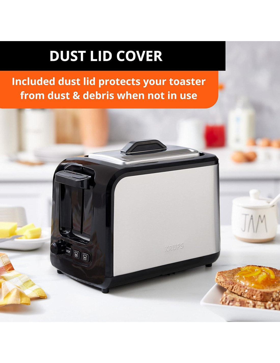Descubre la nueva Tostadora Express de 2 rebanadas de Krups. Con 7 niveles de tostado diferentes, satisface casi cualquier perfil de sabor y variedad de panes. Sus 3 funciones fáciles de usar con luz indicadora te permiten tener control total de tu pan justo como te gusta: detener, para cancelar inmediatamente el ciclo de tostado; recalentar, para calentar pan previamente tostado; descongelar, para tostar pan congelado. La ranura de ancho variable centra automáticamente tu pan, para un tostado uniforme. Cuenta con una tapa de polvo para que, cuando no esté en uso, puedas mantener el polvo y los desechos fuera de la unidad. También cuenta con una bandeja para migas extraíble para una fácil limpieza y para mantener tu tostadora segura. Para completar, su elegante diseño de acero inoxidable se adapta a casi cualquier decoración de cocina.