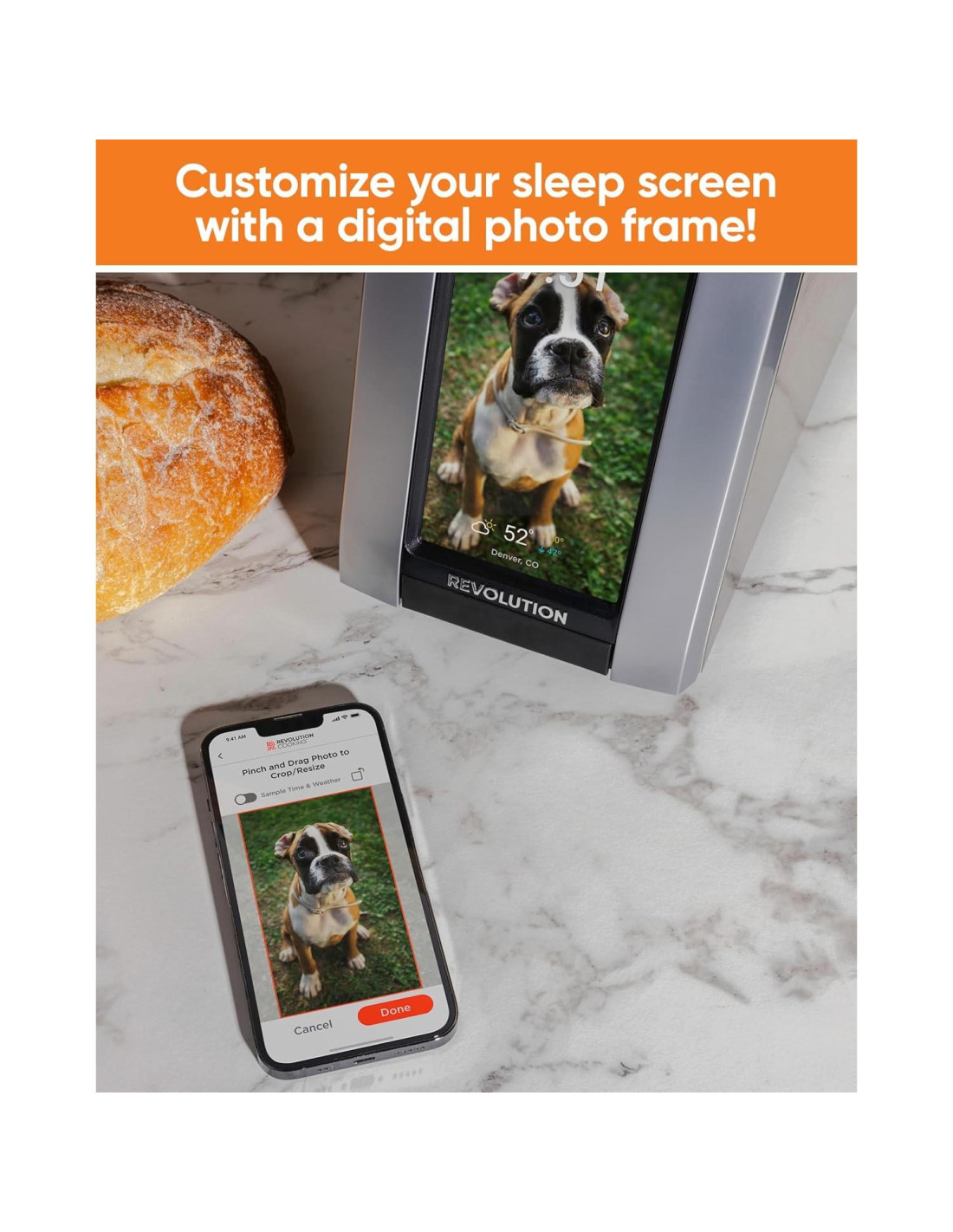- Diseñada para ser vista - Con líneas limpias, una silueta moderna y una pantalla táctil premium, esta tostadora es tan elegante como funcional. El marco digital de fotos integrado muestra hasta 25 de tus imágenes favoritas, convirtiéndola en una pieza de declaración incluso cuando no está en uso.