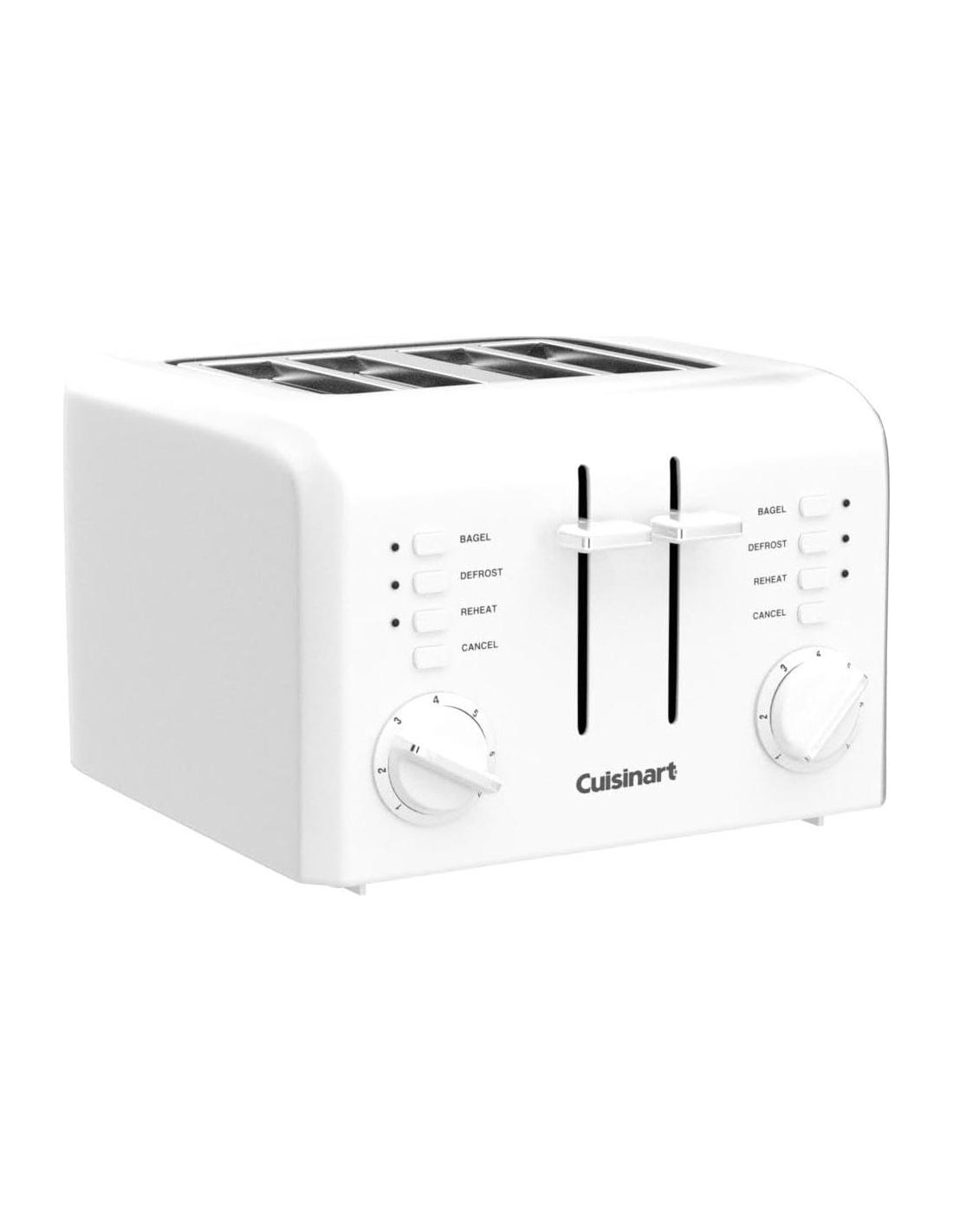 Descripción del Producto La tostadora clásica recibe una actualización moderna sin sacrificar espacio gracias a la Tostadora Compacta de Plástico de 4 Rebanadas de Cuisinart. El carro de elevación alta funciona ya sea que la tostadora esté colocada de lado o de frente, para adaptarse a cualquier lugar de su cocina. Las ranuras generosas acomodan hasta dos mitades de bagel gruesas y dos rebanadas de pan a la vez, tostadas a su satisfacción con controles personalizados duales con siete configuraciones de tono diferentes. Historia de la Marca Por Cuisinart