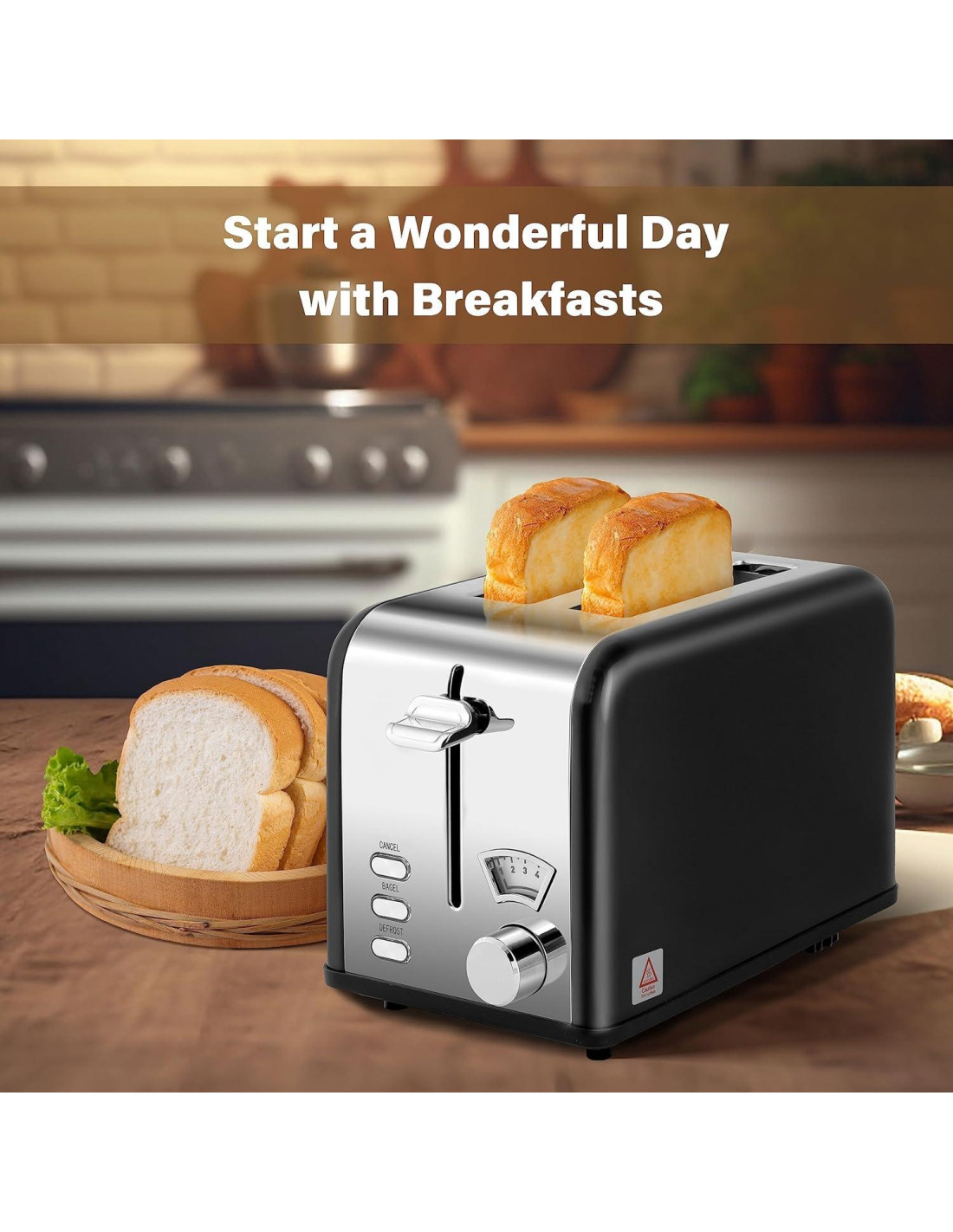- Para los amantes del pan: Los bagels, croissants, muffins y todo lo demás sabrá delicioso cuando se tueste con esta tostadora de 2 rebanadas. Con 5 opciones de dorado y 3 funciones de Descongelar, Bagel y Cancelar, puedes personalizar tu pan como más te guste