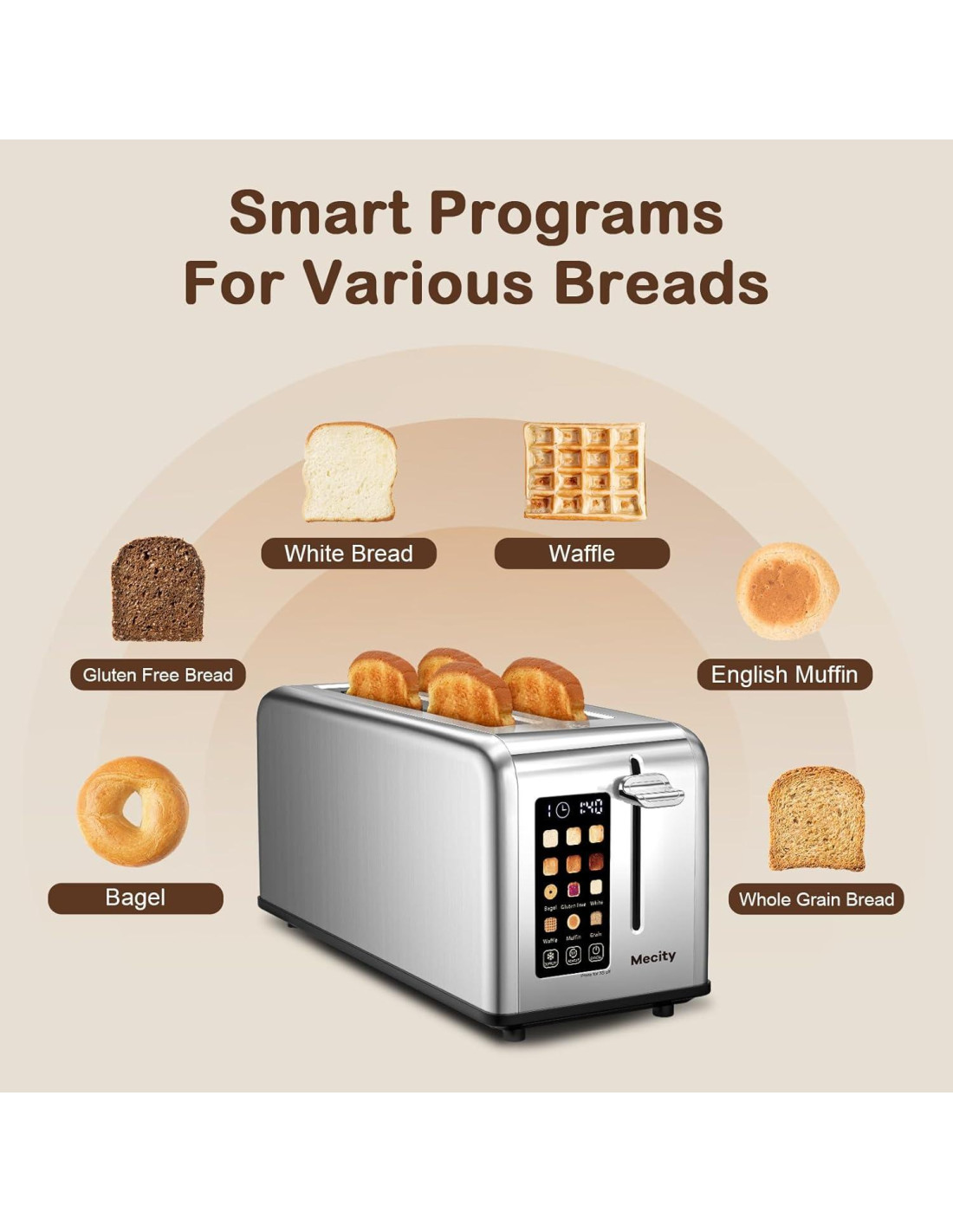 - Para la Mayoría de los Panes: En la pantalla táctil, puede seleccionar entre 6 niveles de dorado diferentes y elegir entre varios tipos de pan. Con solo un clic, esta tostadora inteligente seguirá las configuraciones programadas para hornear su pan a la perfección. ¡Pruébelo y disfrute de panes perfectamente crujientes!