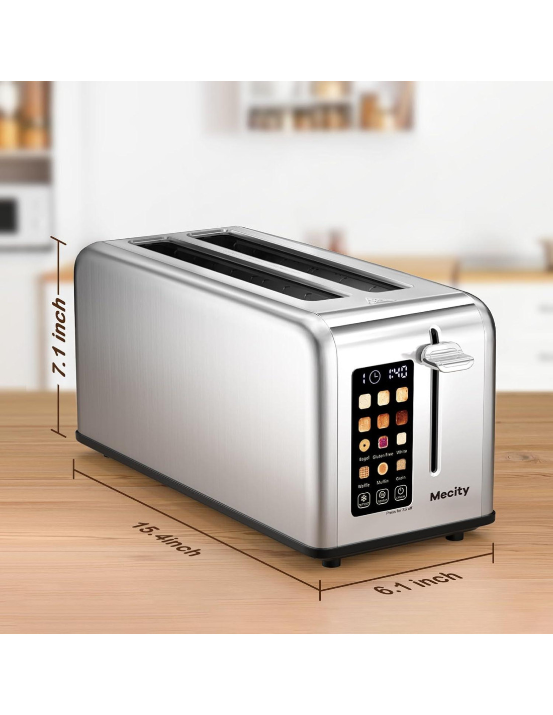 - Acero Inoxidable: La carcasa de la tostadora está fabricada con una combinación de superficie espejo y acero inoxidable cepillado, distinguiéndola de otras tostadoras hechas de plástico. La tostadora Mecity no solo ofrece una apariencia brillante, sino que también garantiza una vida útil duradera.