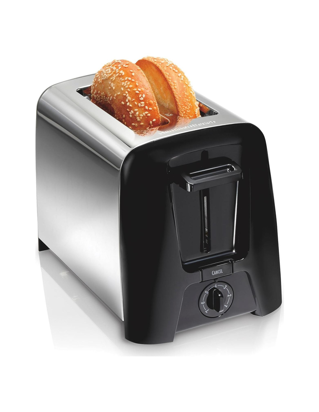 La Tostadora Hamilton Beach de 2 Rebanadas es perfecta para tostar tus panes favoritos. Tiene ranuras extra anchas que se adaptan fácilmente a panes gruesos y bagels. También cuenta con Aumento de Tostado para panes pequeños, un botón de cancelar, apagado automático y una bandeja para migas.