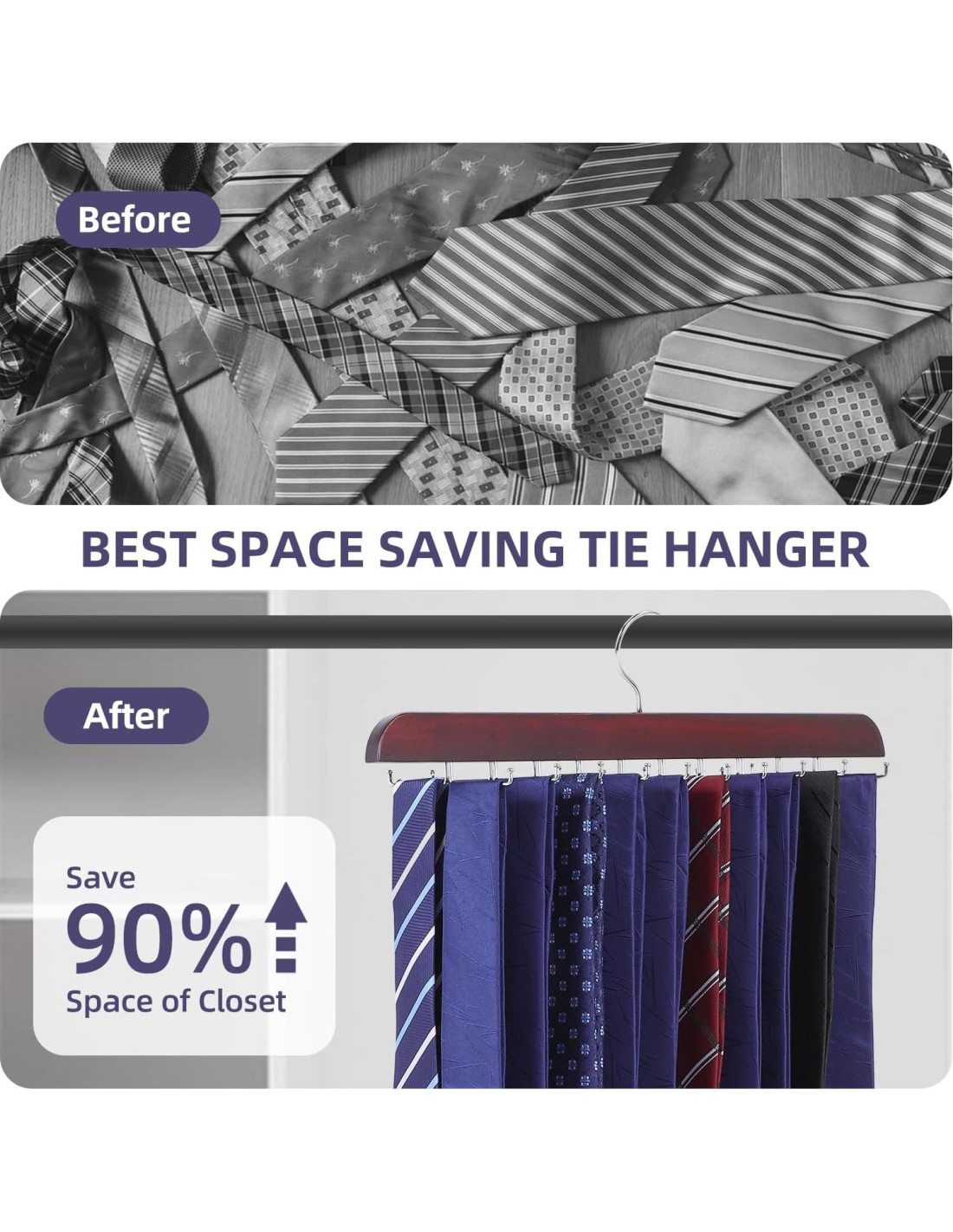 - Mantén tus Corbatas Sin Arrugas: Nuestros Soportes para Corbatas Kimo están diseñados con una función plegable, lo que permite un fácil acceso y organización de tu almacenamiento de corbatas. Di adiós a los cajones desordenados y hola a corbatas perfectamente mantenidas sin ninguna deformación.