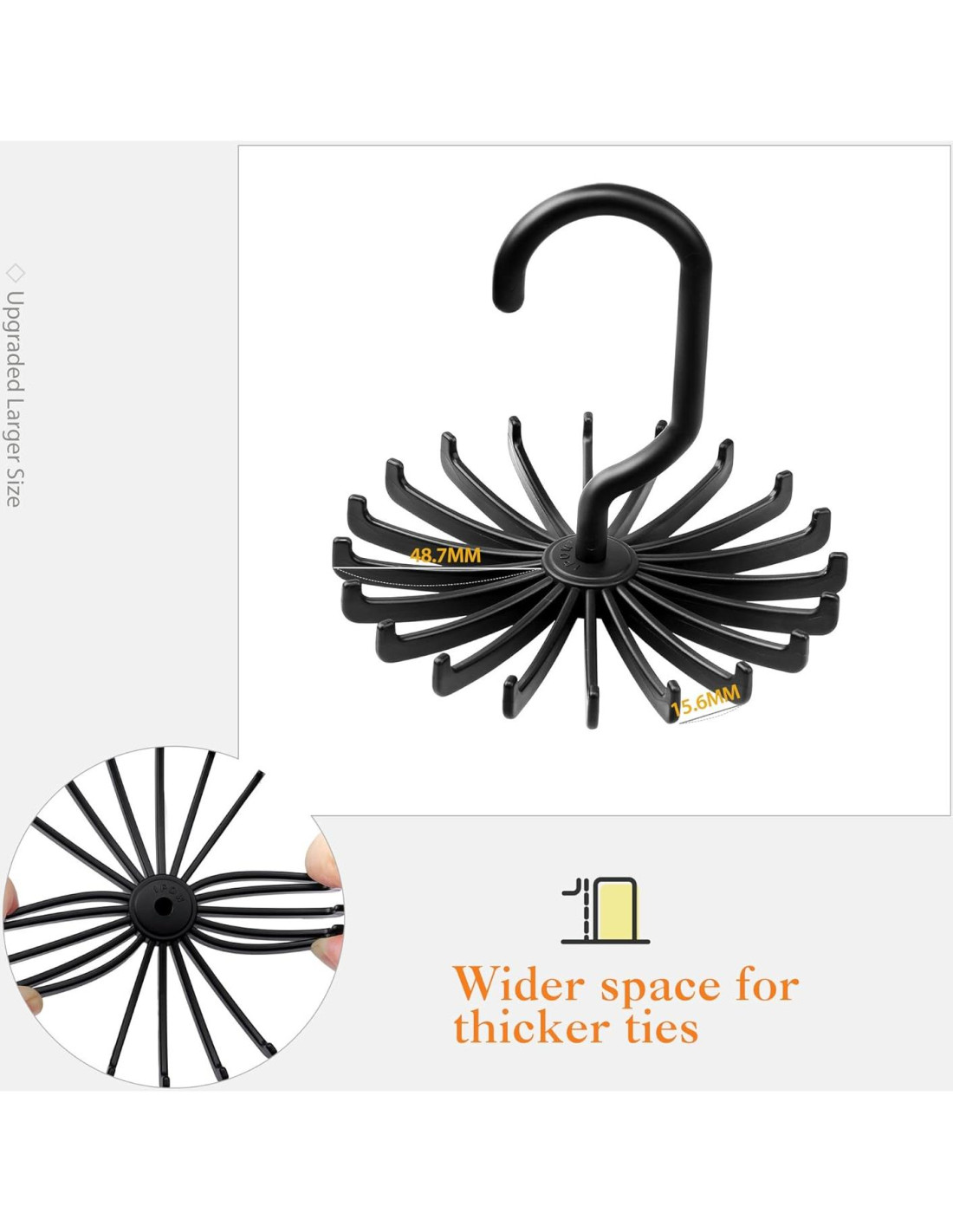 - Giro de 360 con el dedo proporciona una fácil selección, los brazos antideslizantes mantienen las corbatas en su lugar.